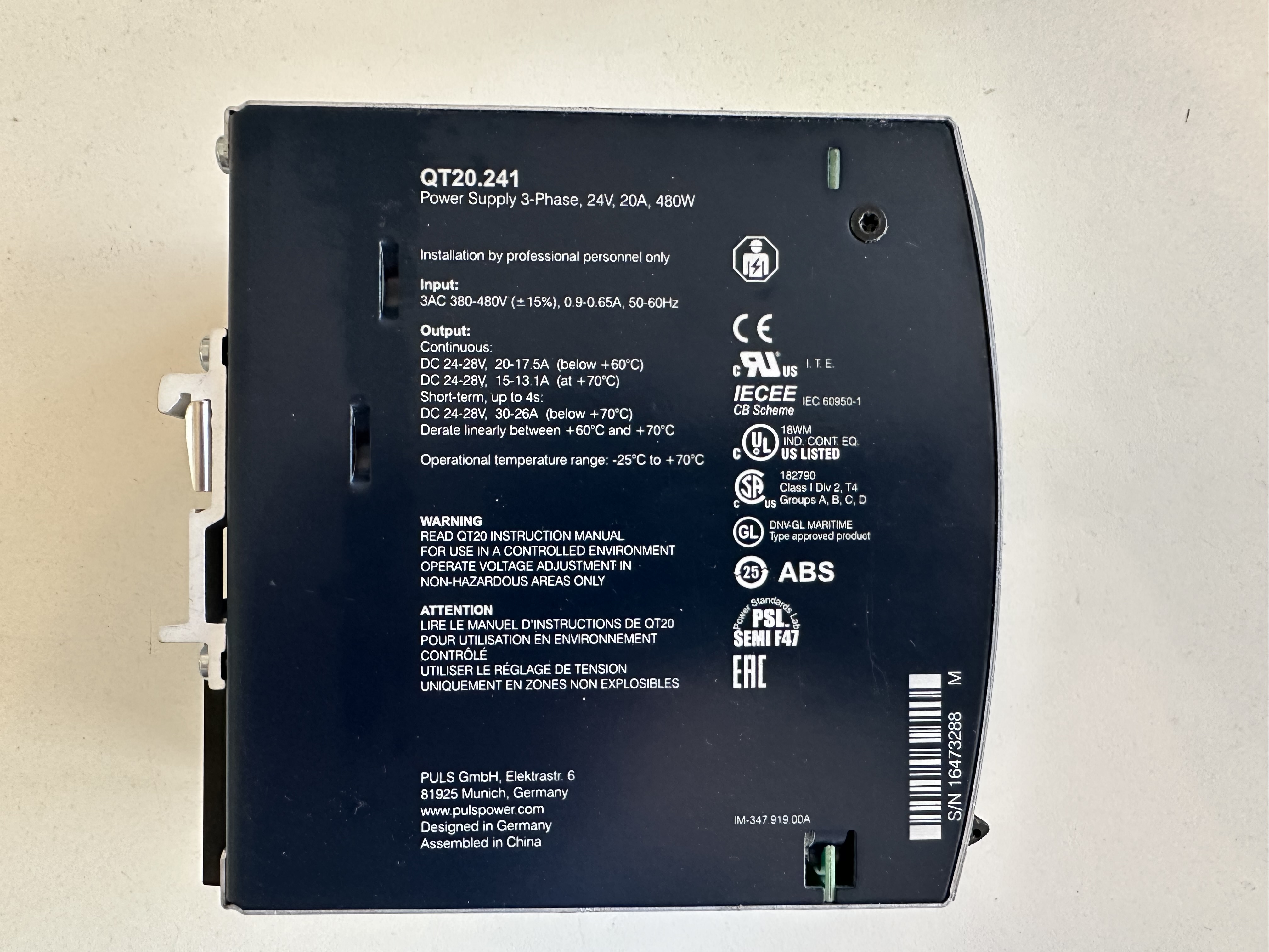 4. Napájecí zdroj Puls QT20.241 24VDC, 20A, 480W, nové nepoužité, 1000 Kč