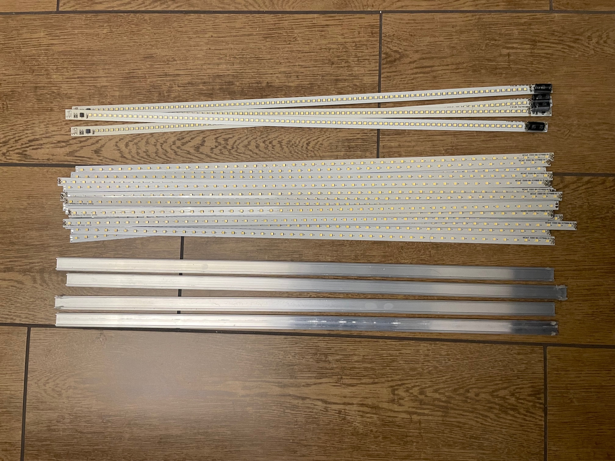 Typ 2. 4ks hliníkového pásku s 84 SMD LED (špatná elektronika, blikají, ovšem LEDky jsou OK)
