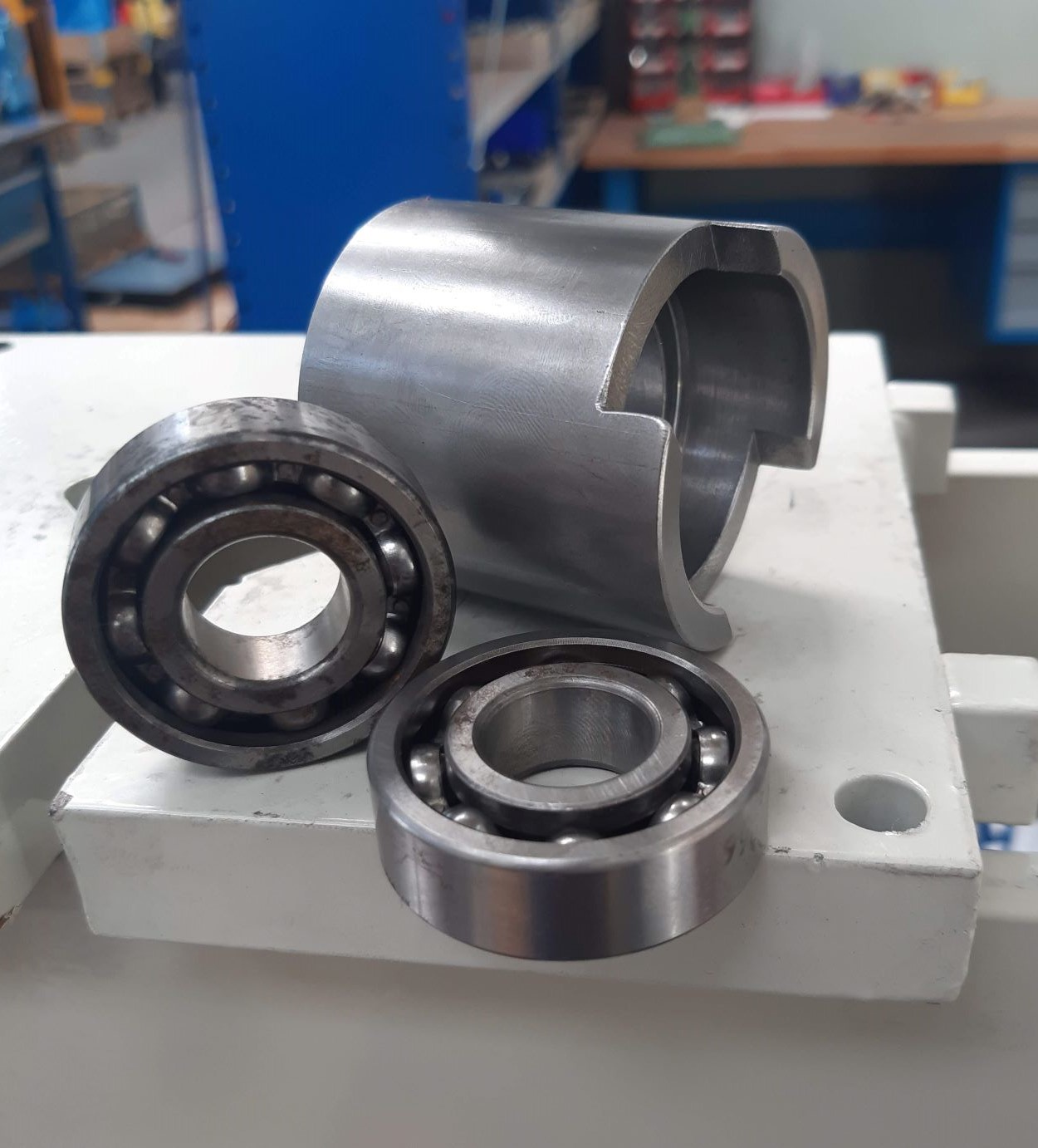 Potřeboval jsem na to 2 kousky jeklíků z odřezků délka 140 a 160 mm, 2 kousky hlazenky, kus závitovky, matici, kusek trubky, kus pásoviny na kliku a 6 menších ložisek a 2 větší (42 mm). Vše ze šmelcu a ze zbytků, ložiska někde z pod ponku odložená co dům dal.