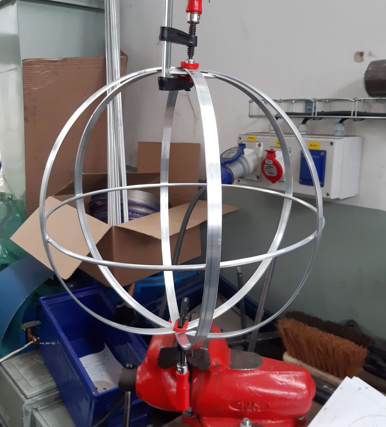 No a výsledek, stočené kruhy a kulatina sesazené koule před svařením