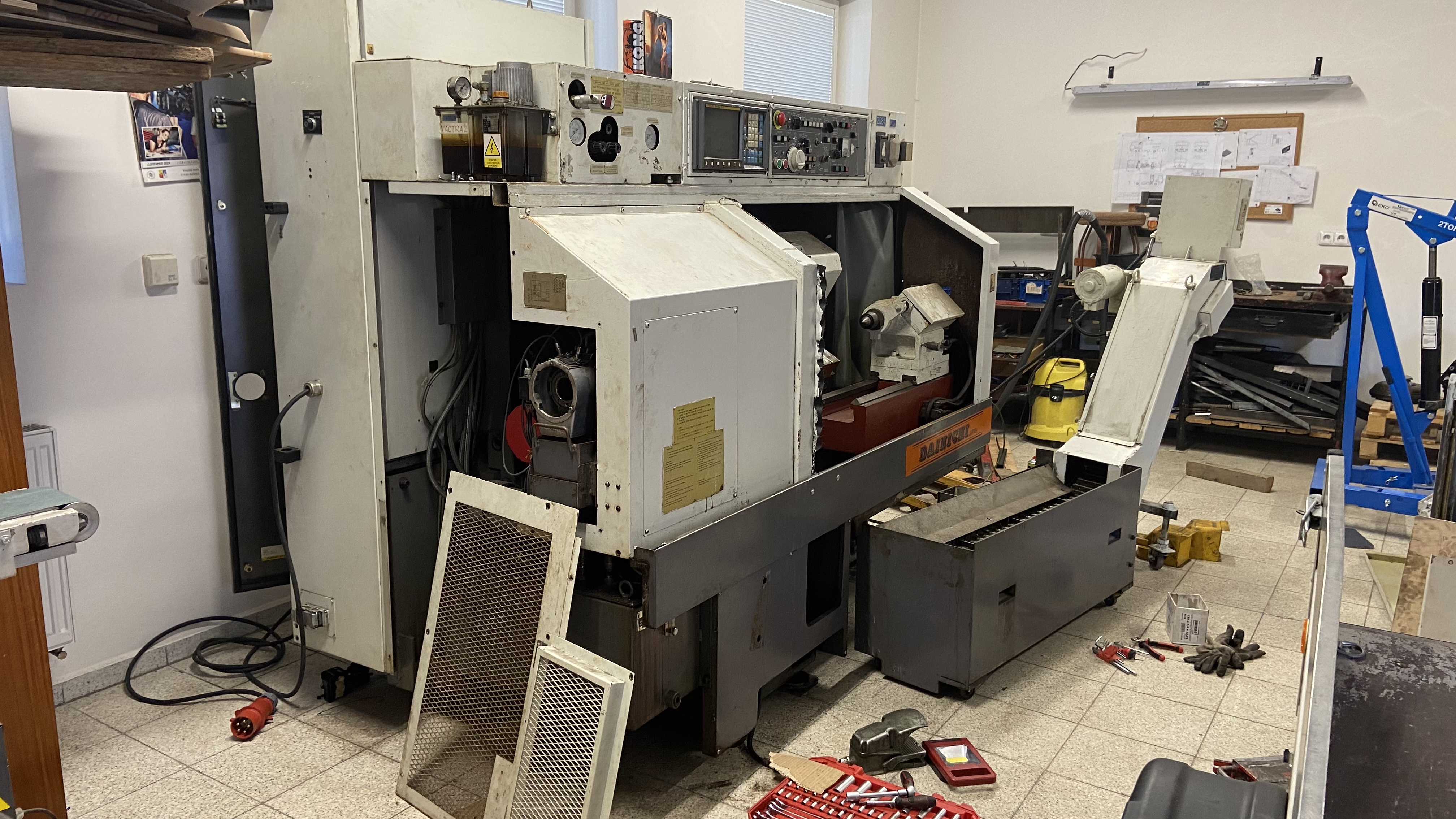 Je tam Fanuc 0-T, 12 držáků, hydraulicky ovládaný koník.
