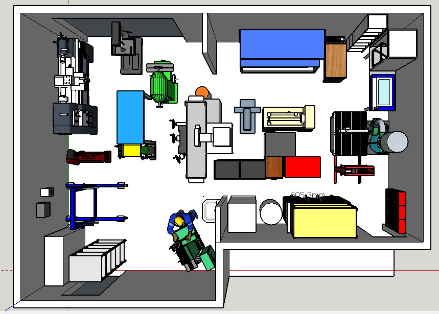 Jenom poznámka k těm strojům, taky jsem měl kdysi v hlavě přesný plánek, kde bude co stát, ale od té doby se to min. 3x změnilo a dnes půlka strojů je už úplně jiných a stojí jinak a je jich 2x tolik ... a to ještě určitě není definitivní. Co já vím, co mě nadchne za rok :) Takže bych se vůbec nevázal na konkrétní rozmístění konkrétních mašin, ale koncipoval bych to stavebně tak, aby stačilo vzít ráno paleťák a večer mět dílnu jinak, přívody udělat aby šly snadno přepojit atd.