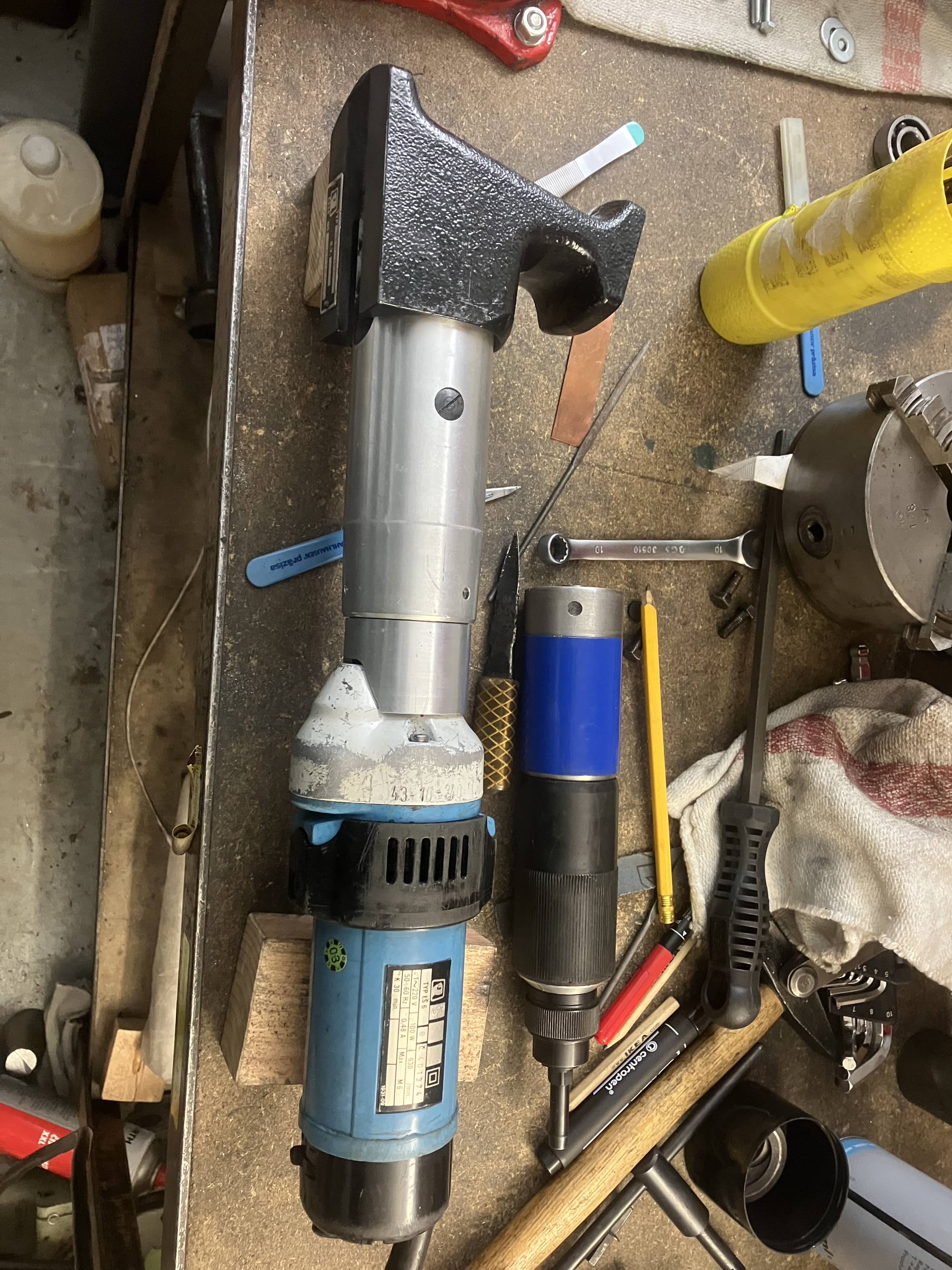 zexner píše: 9. 1. 2025, 8:57 Stydím se. Budou to asi 2 roky, co jsem ze Zbýni tahal rozumy ohledně jeho předělávky Narexáckého, původně pneumatického škrabáku. Pak jsem sehnal Narexácký šroubovák EŠ 6, který se na přestavbu pneu-> elektro pohon celkem hodí. Ten nebyl nic moc a musel jsem ho poopravit. Dál to bude rok, co mě Charon obdaroval ze svých syslátů druhým motorem jako součástkovou základnu. No a teď jsem to konečně dodělal. Doufejme, že mi to pomůže urychlit práce při základním škrabání a ručně pak budu dotahovat jen detaily a parádu.