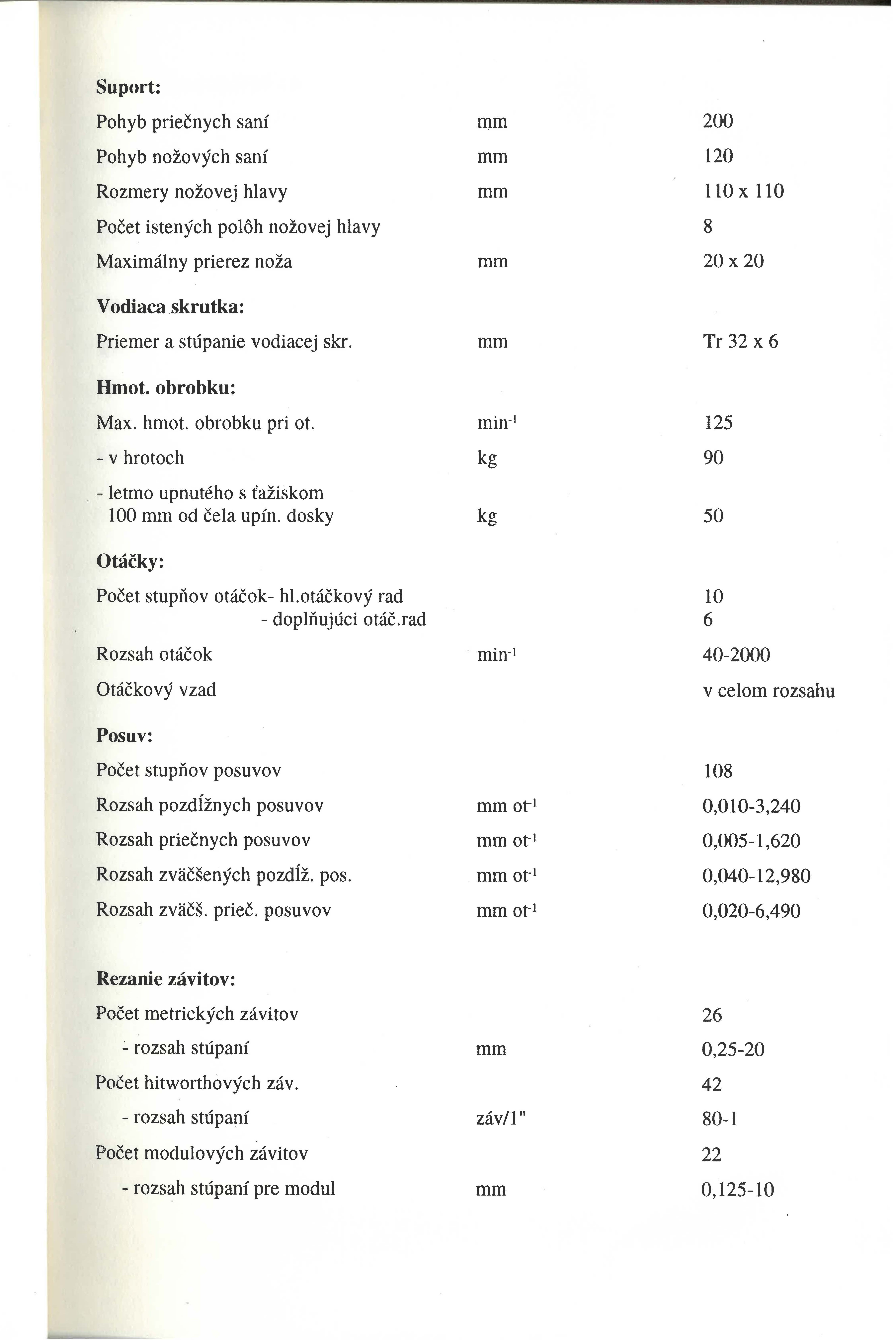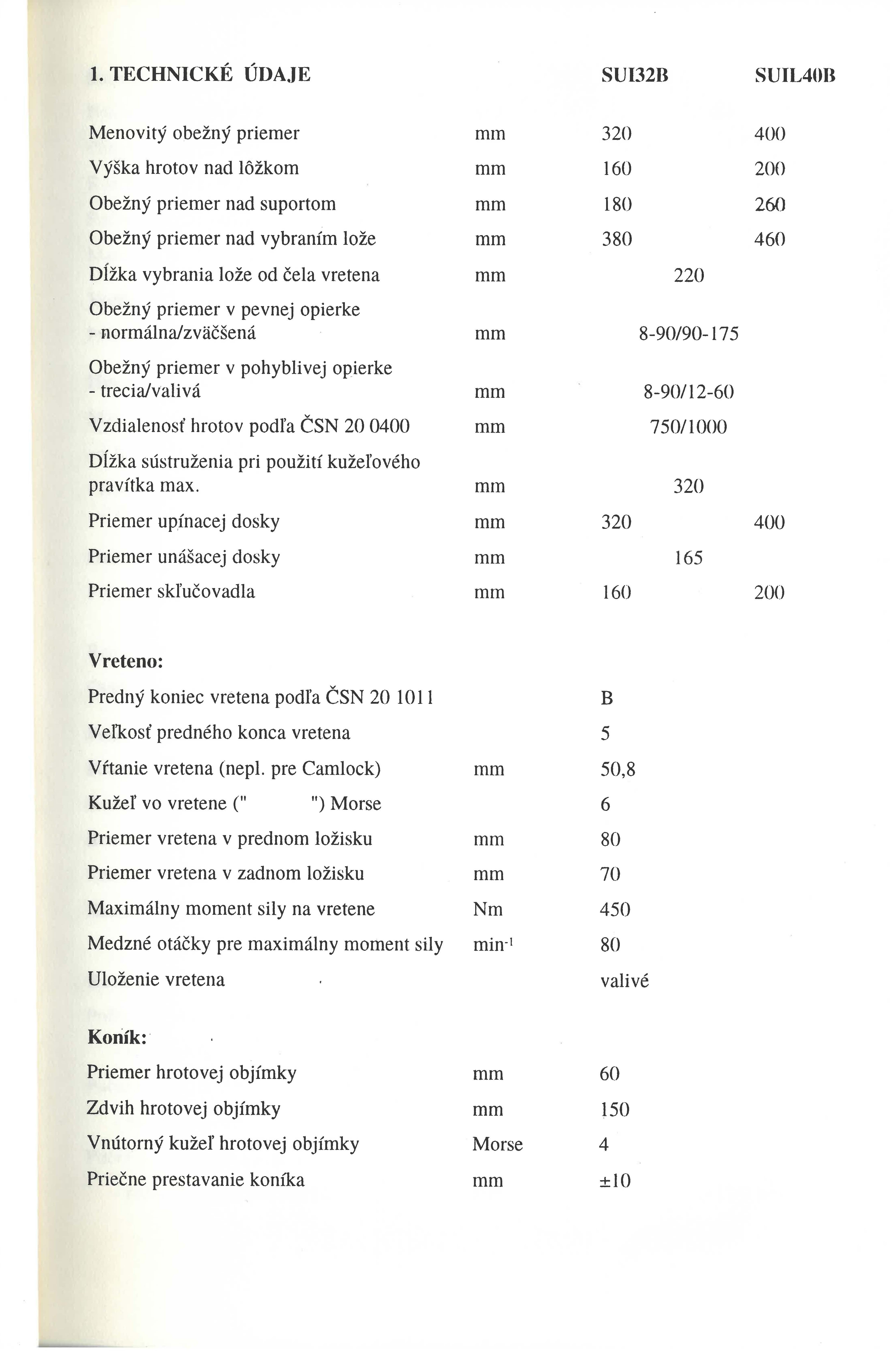 ## **Technické parametry soustruhu SUIL 40**
