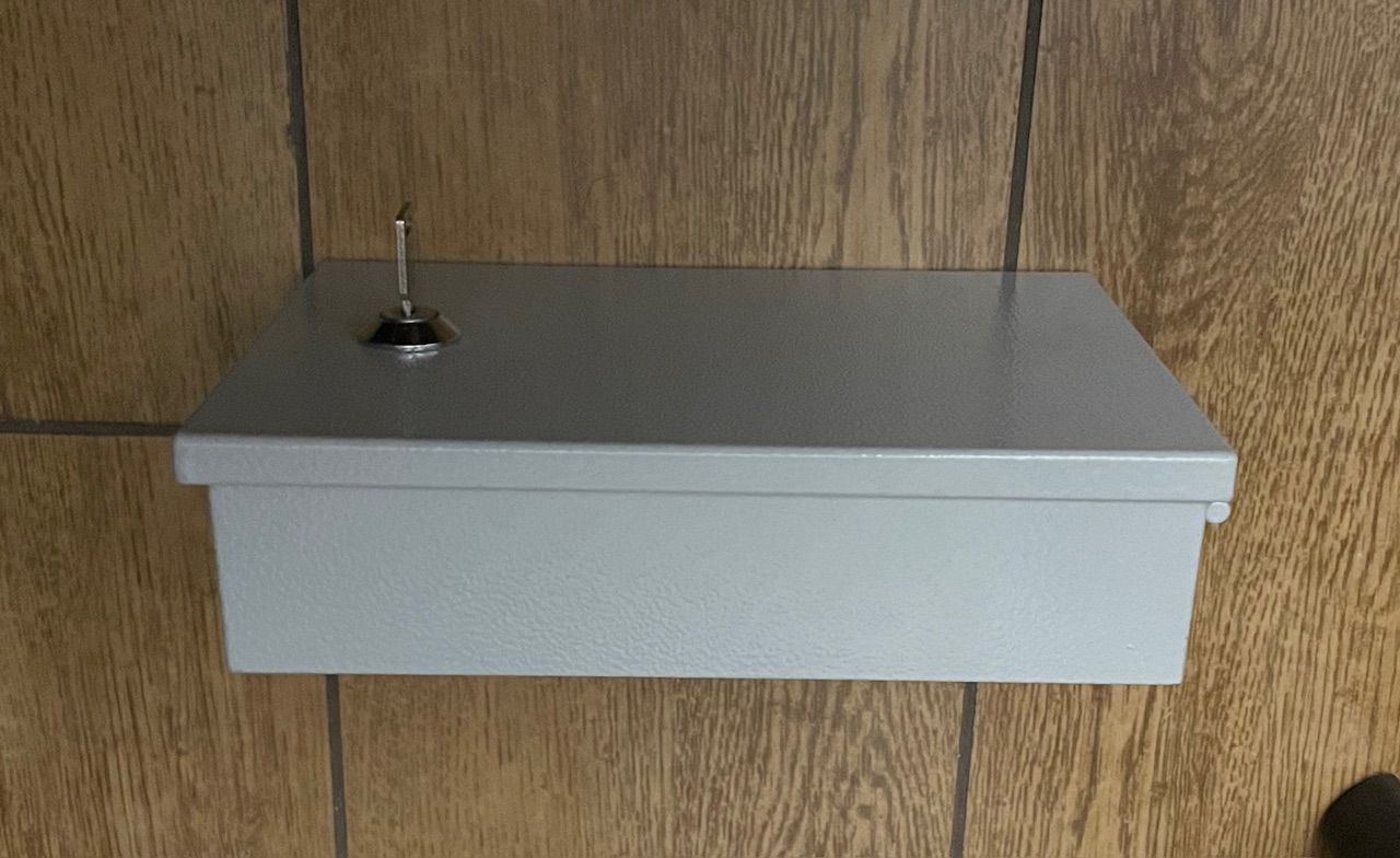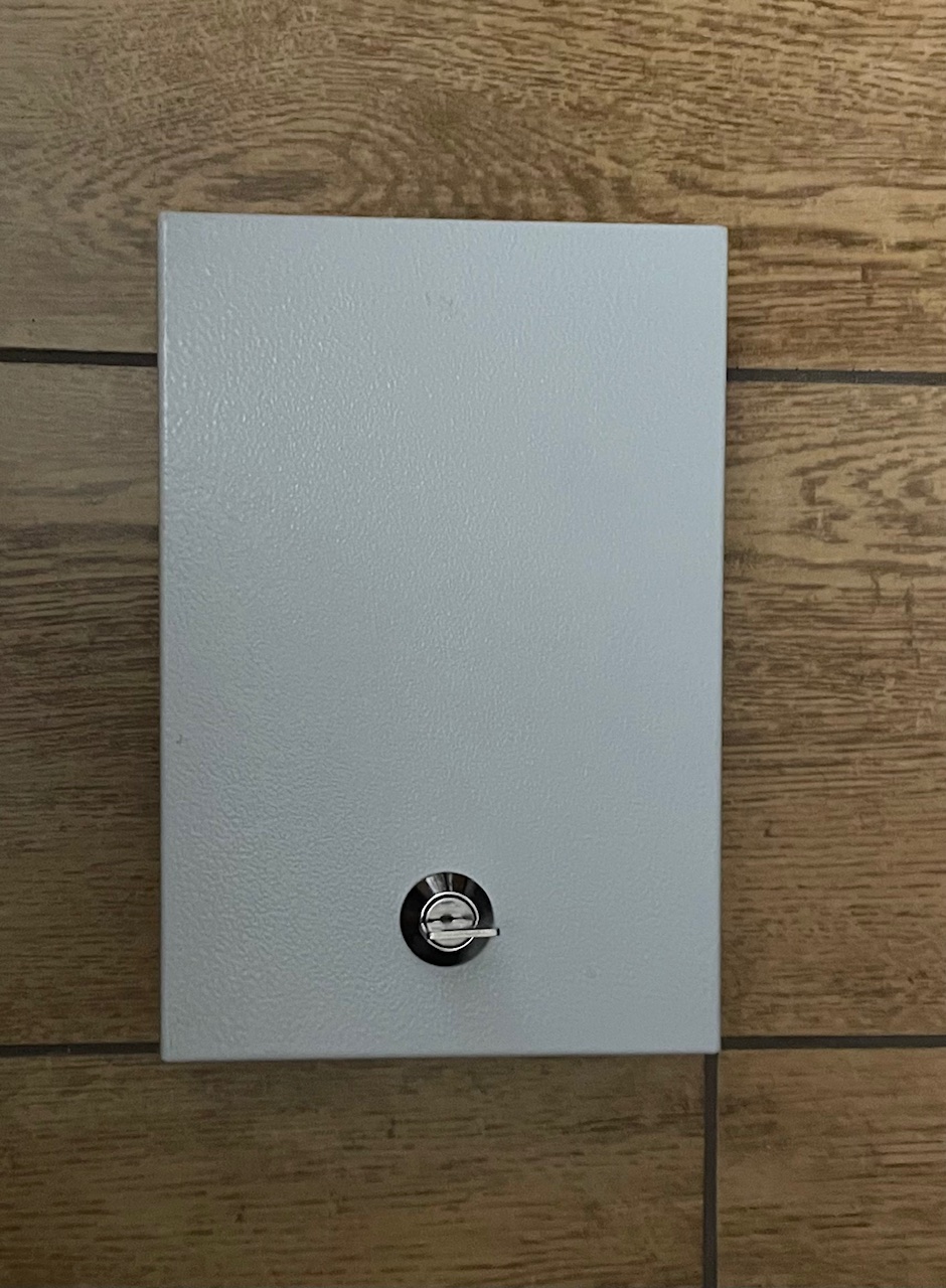 1. uzamykatelná plechová skříňka s tamperem, lakovaná jako nová