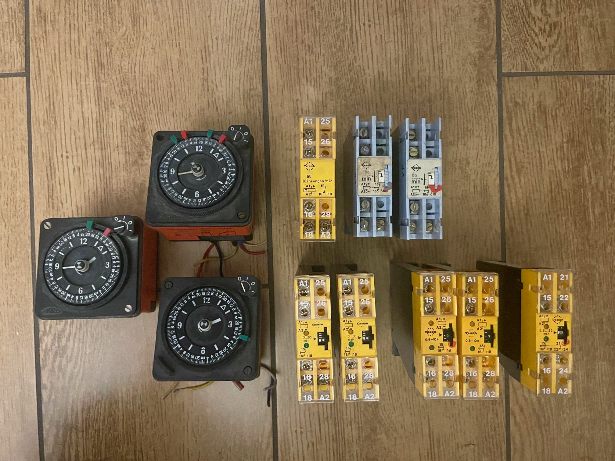 Průmyslové časovače na DIN lištu, použité,plně funkční, napájení 230V