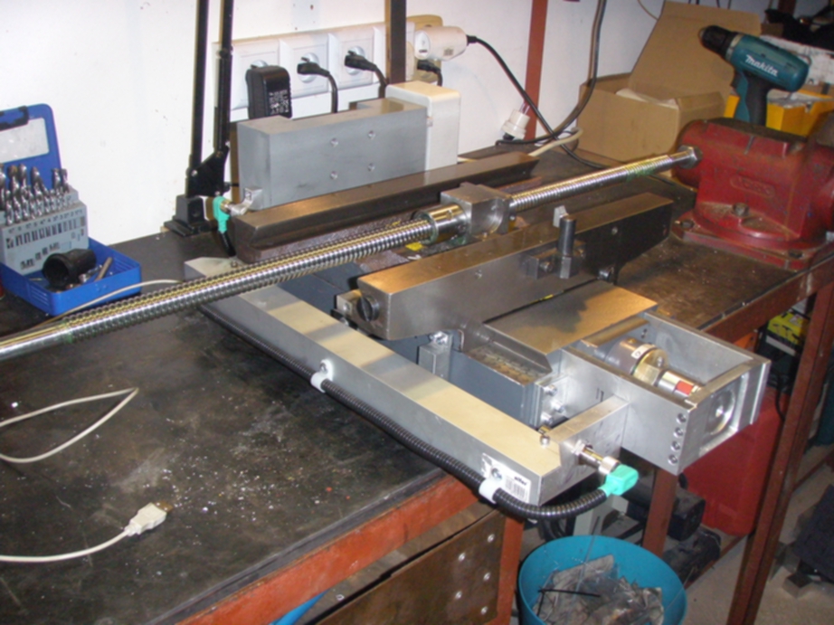 Krokové motory mám uchycené v duralových domkách , myslím, že jsou patrné z fotek, spojení je na přímo přes pružné spojky a kuličkové šrouby jsou průměr 20mm od CNC shop (moc doporučuji) noa matky jsou předepnuté, určitě doporučuji, cena je sice dvojnásobná, ale přesnost je rozhodně zaručena do daleko větší zátěže.
