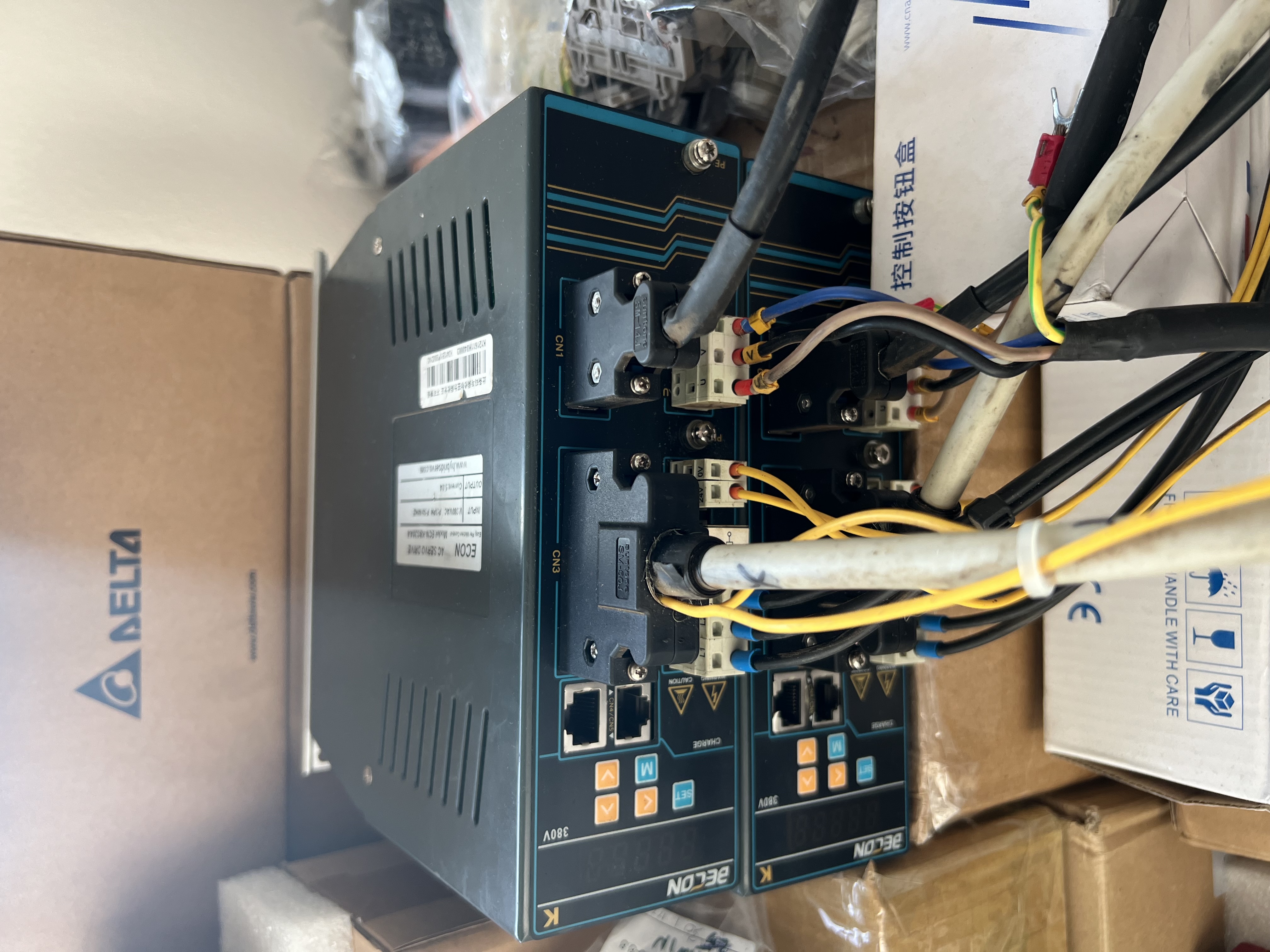 Prodám servomotory, drivery a konektory. Jeden servomotor s brzdou, druhý bez brzdy, kabely jsou ustřižené, ale ve všech konektorech jsou (i k motorům) zbytky kabelu, je tam obyčejný kabel, u enkodéru obyč stíněný, nic nákladného. Bylo to vytaženo ze soustruhu který šel na likvidaci protože se vydřelo lože ale byl to retrofit, proto jsou ty komponenty relativně nového data. Vše dělal pan Kotouček z retrofitu. Prodám oba zároveň, nechci to kouskovat, jeden motor se prodává špatně.