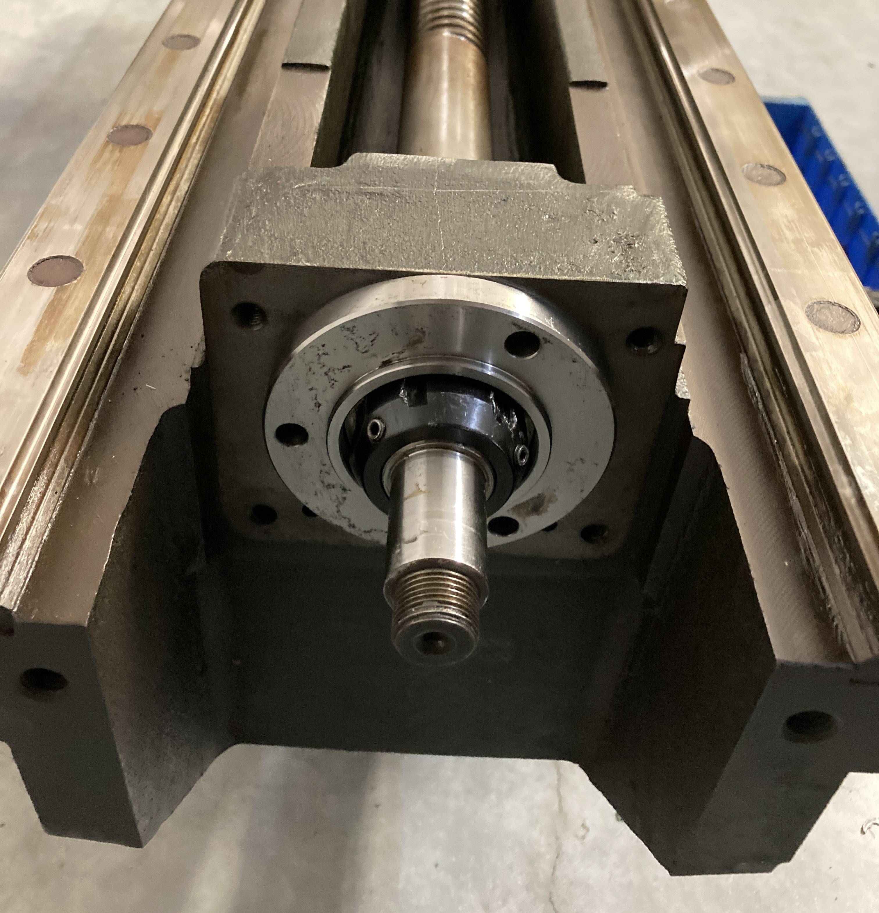 Ostal este z frezky suport Z osi. Po dlhsom vahani som vyhodnotil, ze nebudem stavat hybatko, na ktore som mal nachystany tento kus. Chybaju k tomu imbusy komplet. Je to vycistene az na voziky 6ks, je k tomu aj motor s driverom keby niekto chcel. Vaha cca 200kg, dlzka cca 120cm