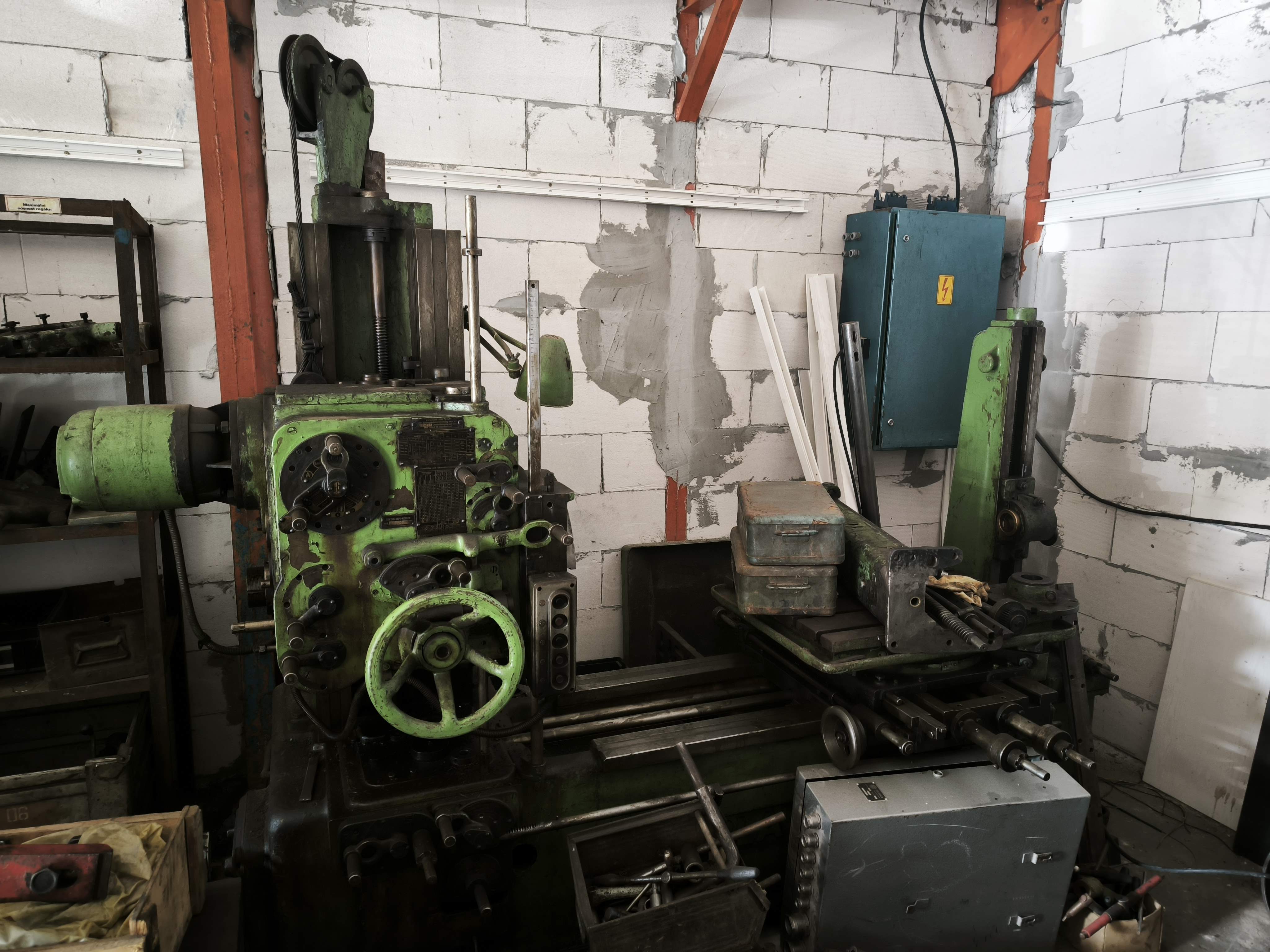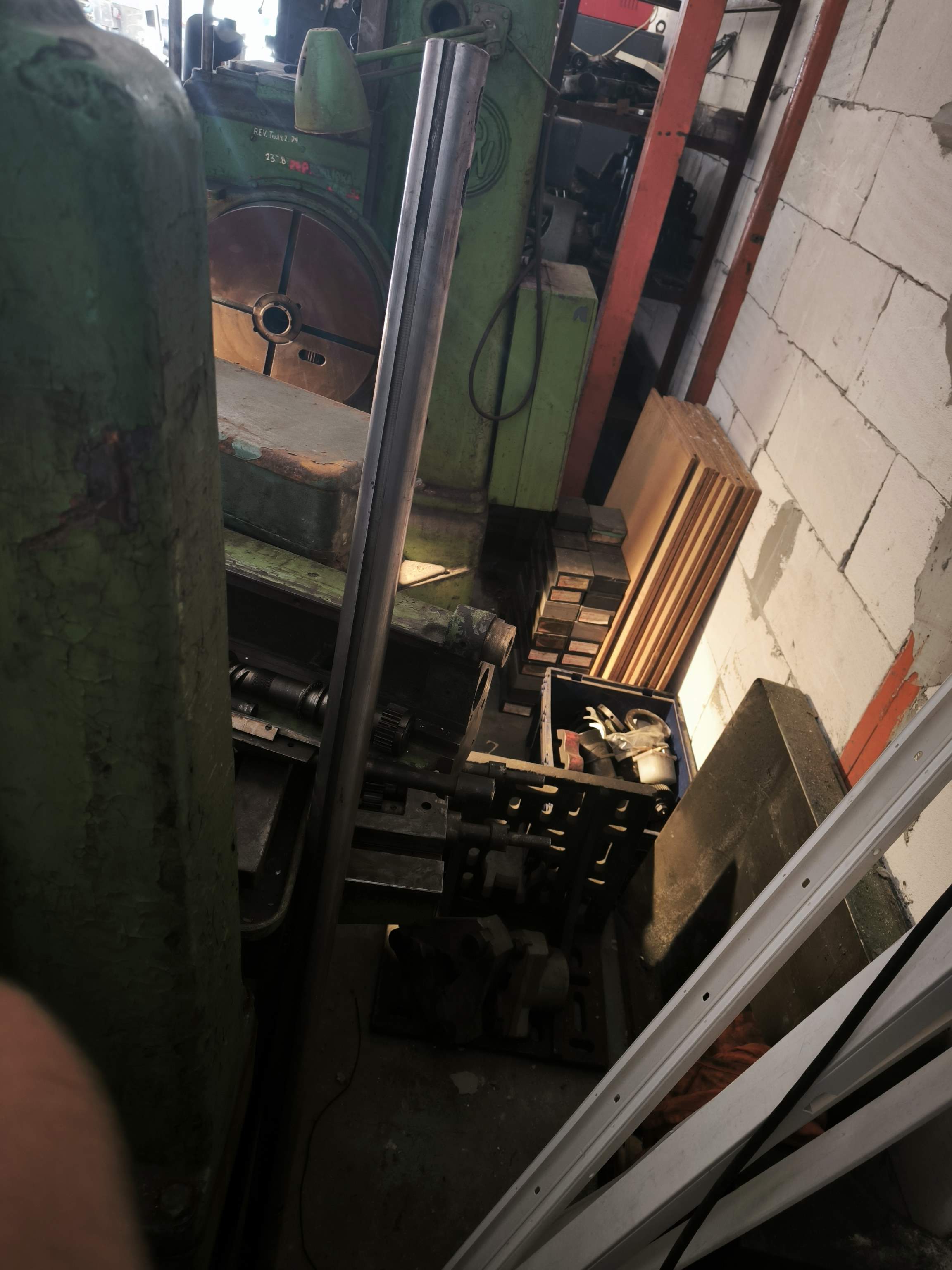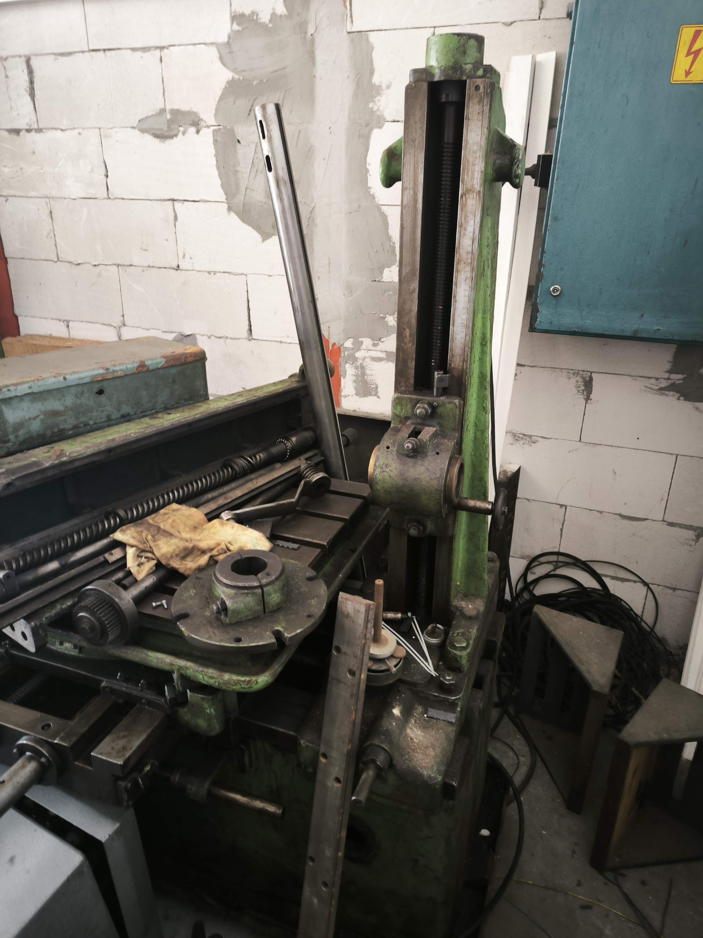 Hmotnost stroj cca 6 tun. Bohužel při stěhování se nabouralo do vřetena a ohnula se vyvrtávací tyč (na fotce opřena o stůl). Už nemám chuť vyrábět novou a proto zkusím nabídnout fanouškovi před kovošrotem.