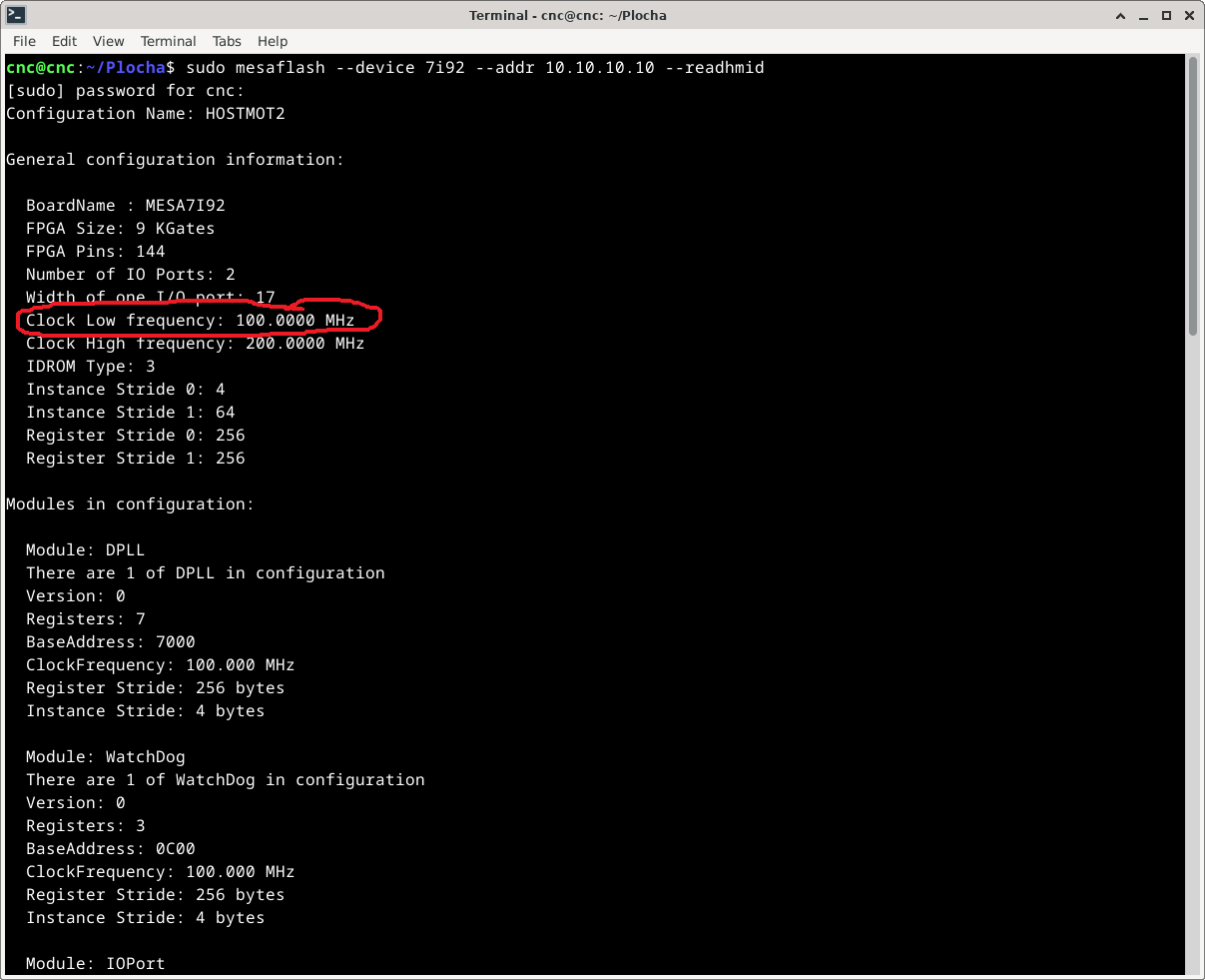 ClockLow mám 100MHz, používám ještě starou původní 7i92 s čipem spartan6