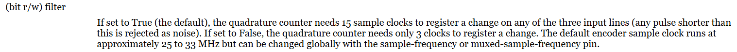 Narazil jsem na parametr hm2_7i92.0.encoder.00.filter který mám nastavený na hodnotu true. Když jej vypnu tak bych měl teoreticky číst až 5x rychleji (cca 650kHz), zatím jsem nezkoušel, až budu mít čas tak testnu a dám vědět.