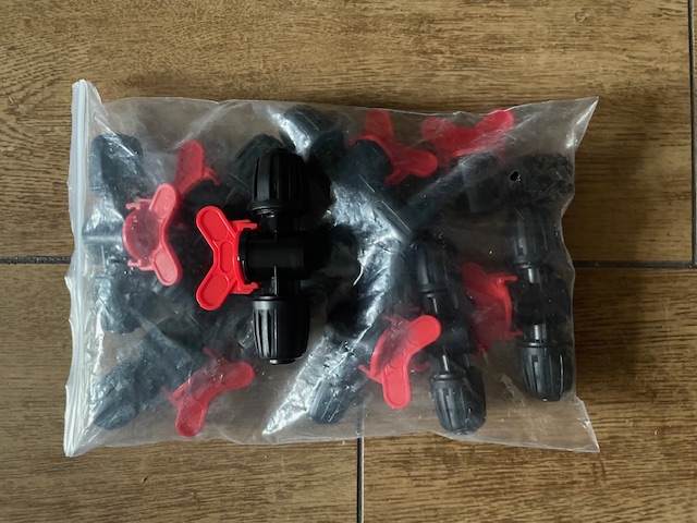 32. pytel s 10ks 1/2" plastovách ventilů pro hadice 1/2" na závlahy apod.