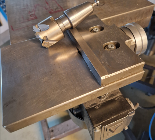 Našel jsem fotku srážečky co jsem měl kdysi přichycenou na boku frézky. Takže kostička co na ní fréza nechala vyhrnutý grot se hned odjehlila ... Bez problémů to zmáklo 2mm hranu.