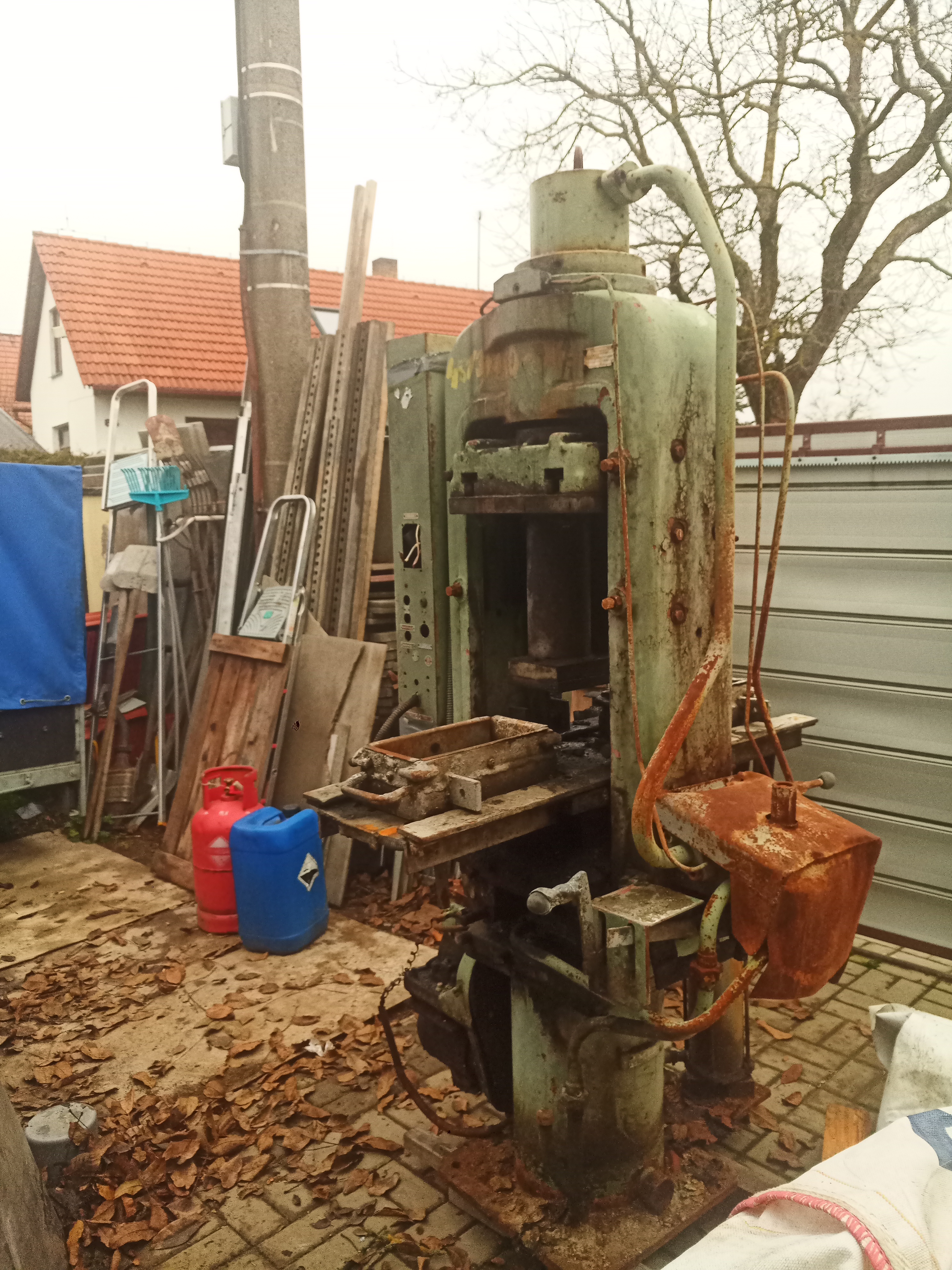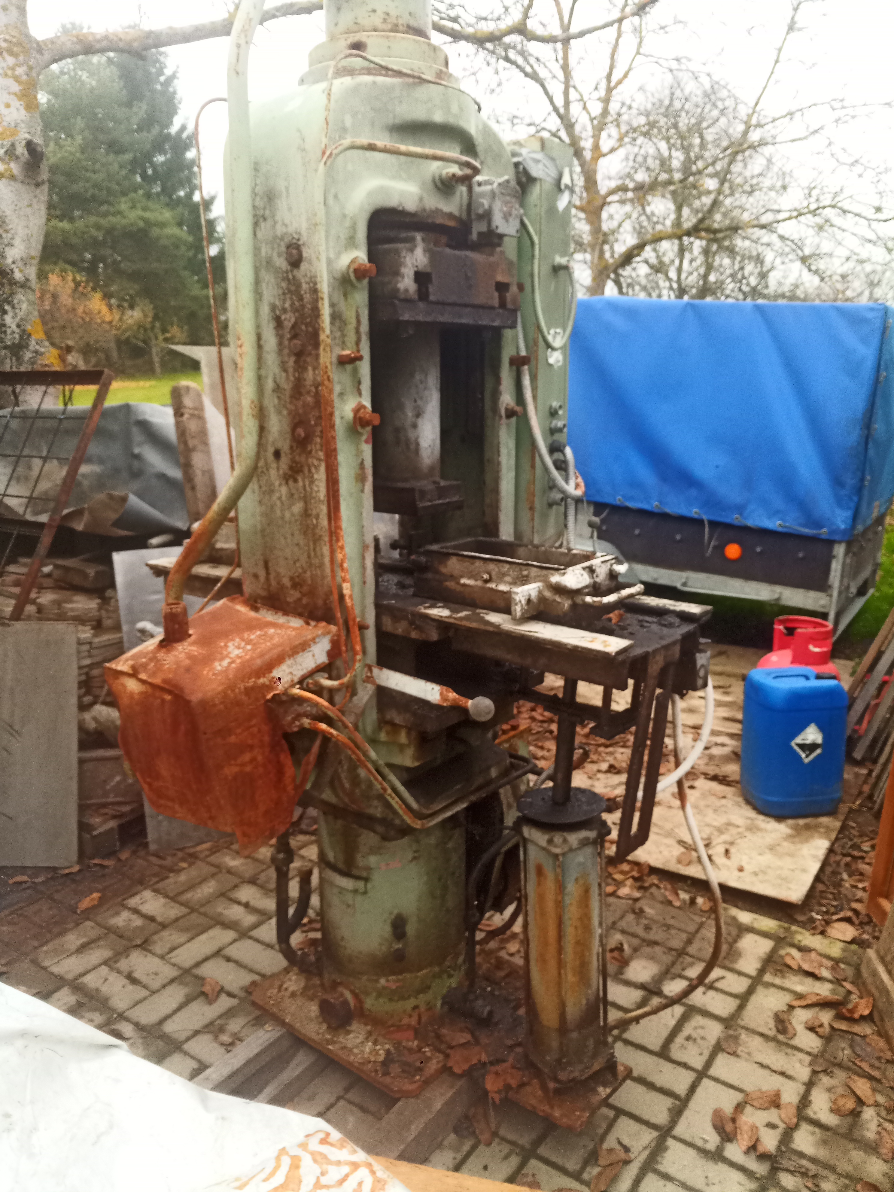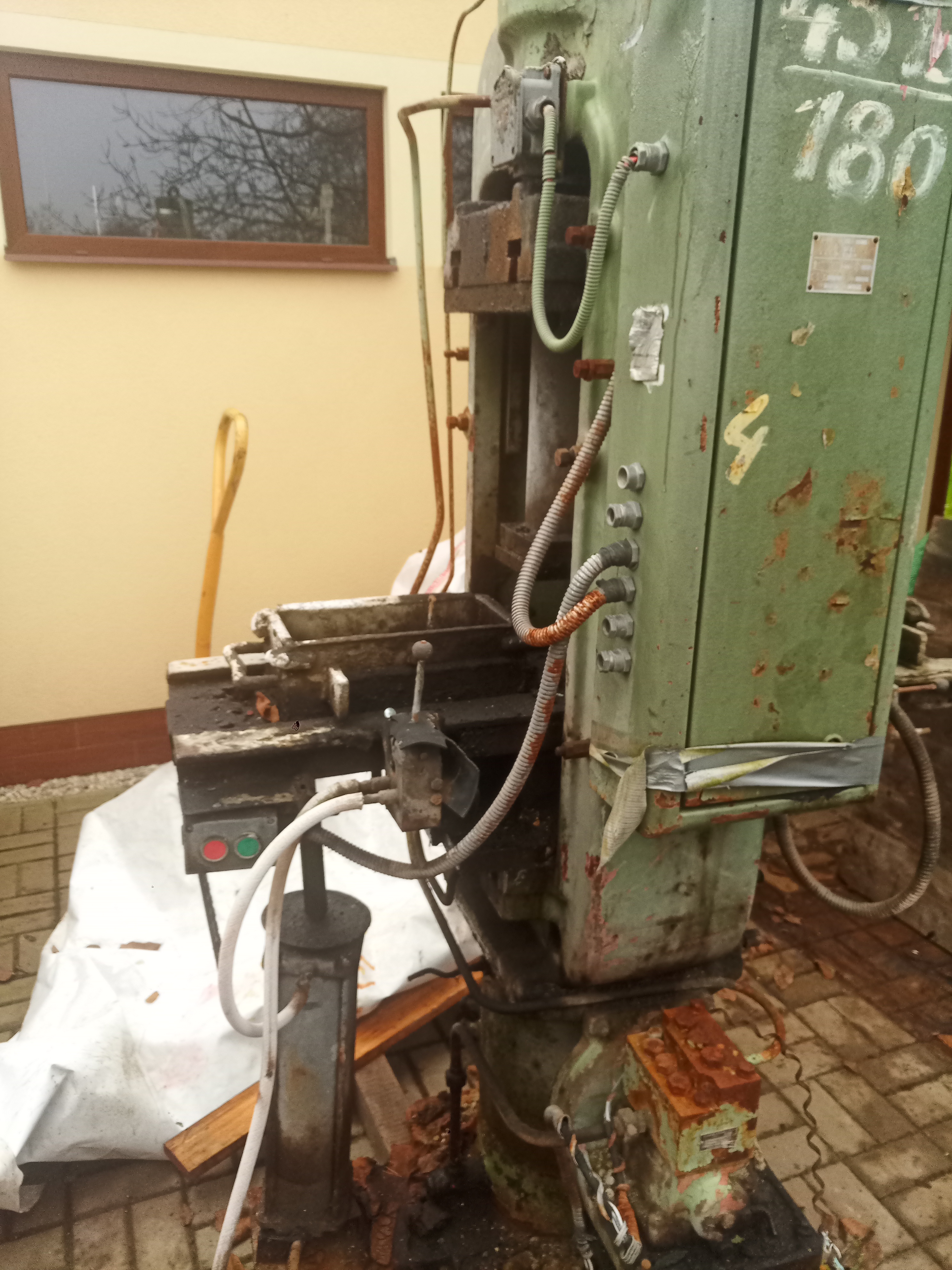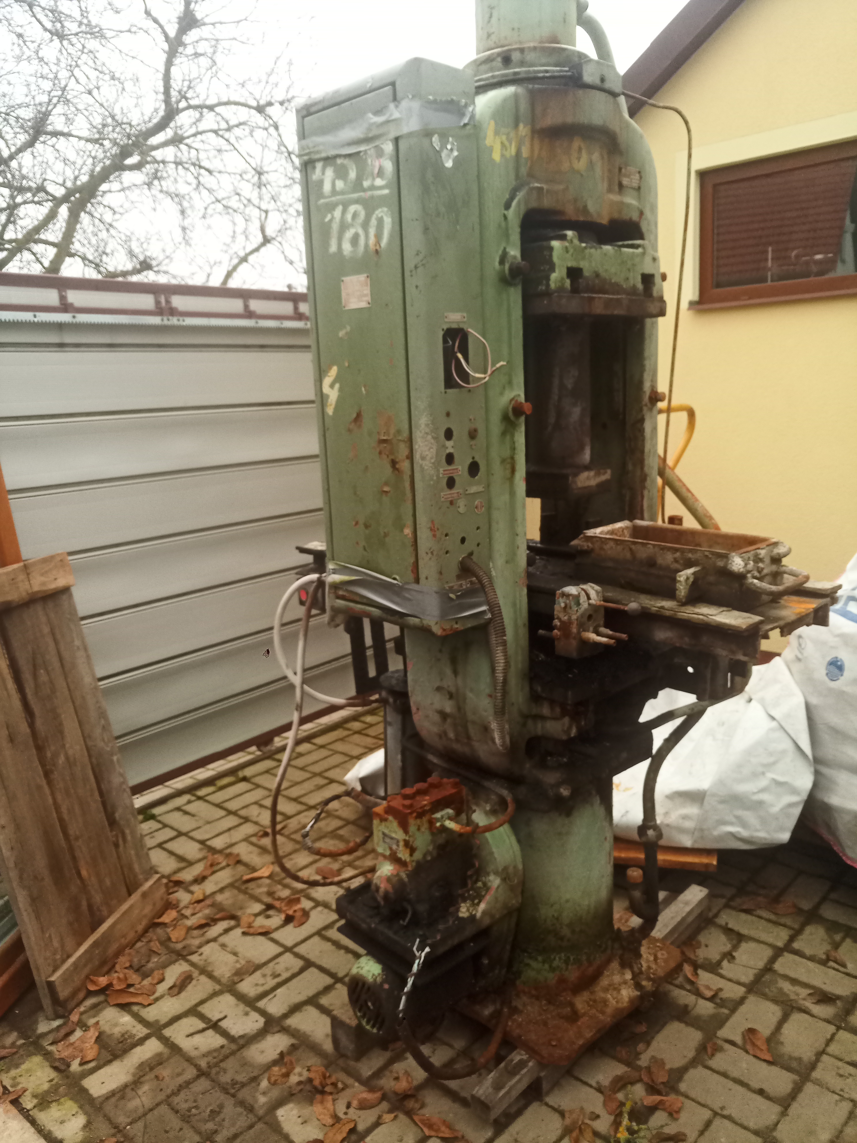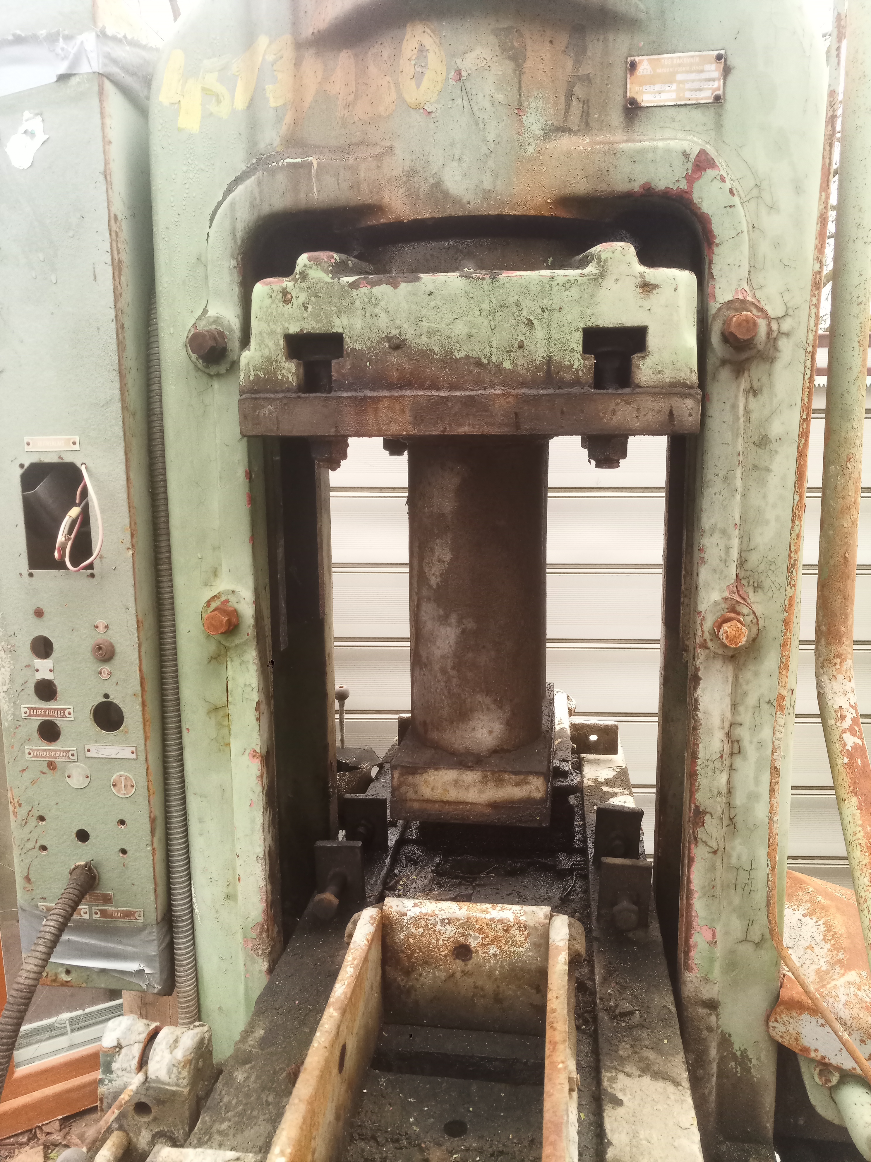 Slouzil na lisovani cihel, z jedne strany ma pridelany vytlacny pist.