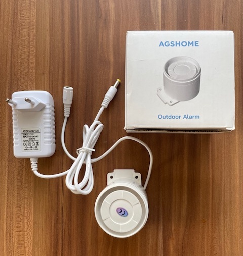 výhoda: siréna může být umístěna v jiné místnosti než ústředna, spojení s ústřednou je bezdrátové a napájena může být z jakékoliv zásuvky 230V přes dodaný adaptér.