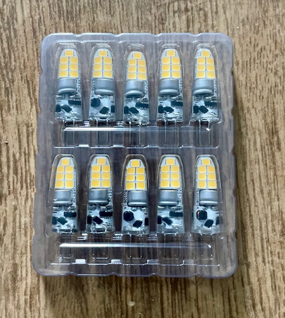 12V LED žárovky pro patici G4 - náhrada 20w halogenu v digestoři.