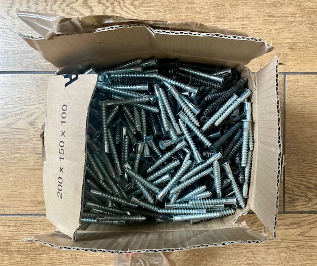 Krabice cca 6-7kg nábytkových vrutů - konfirmát 7,0x50