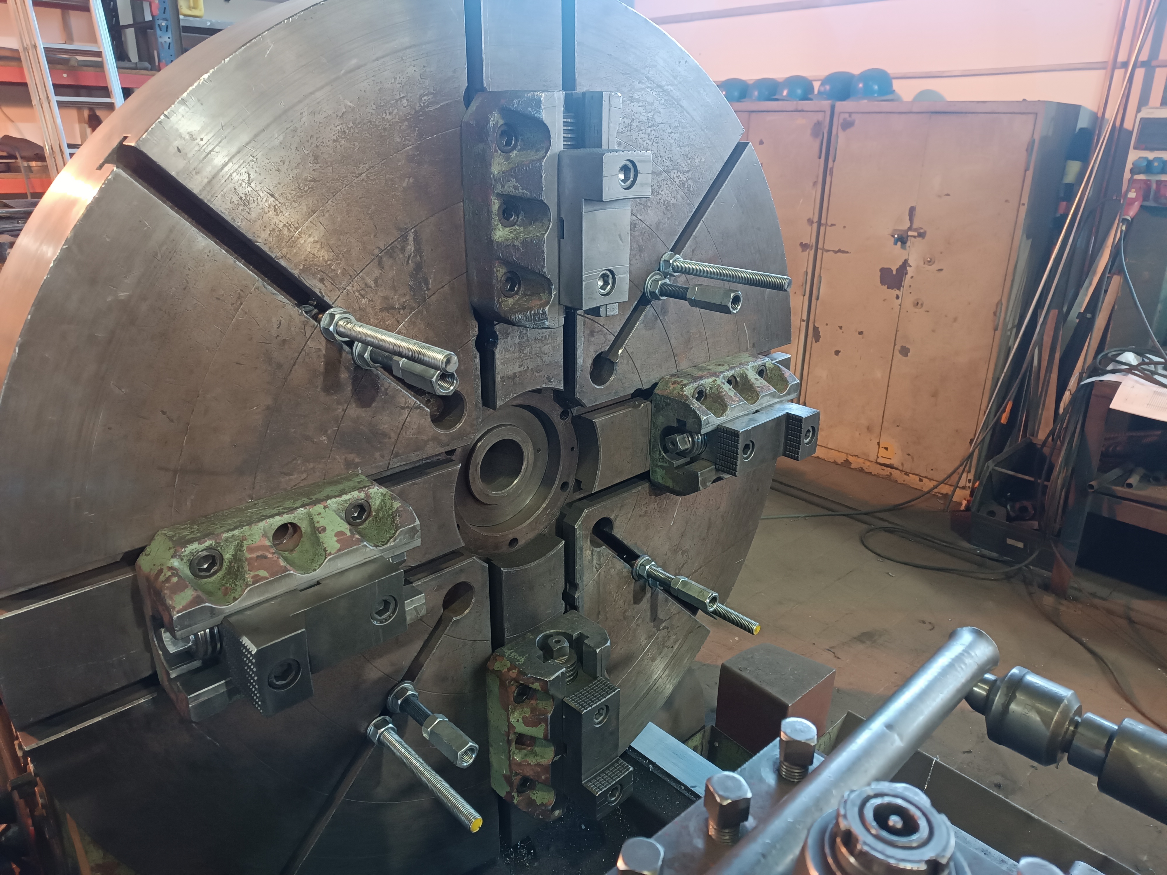 Ak má obrobok navŕtané centrovacie jamky, videl som video, kde do vretena dali hrot, do koňa druhý, podopreli nimi obrobok, následne priložlili v 2 osiach hodinky a podoťahovali jednotlivé pakne tak, aby sa hodinky nepohli.