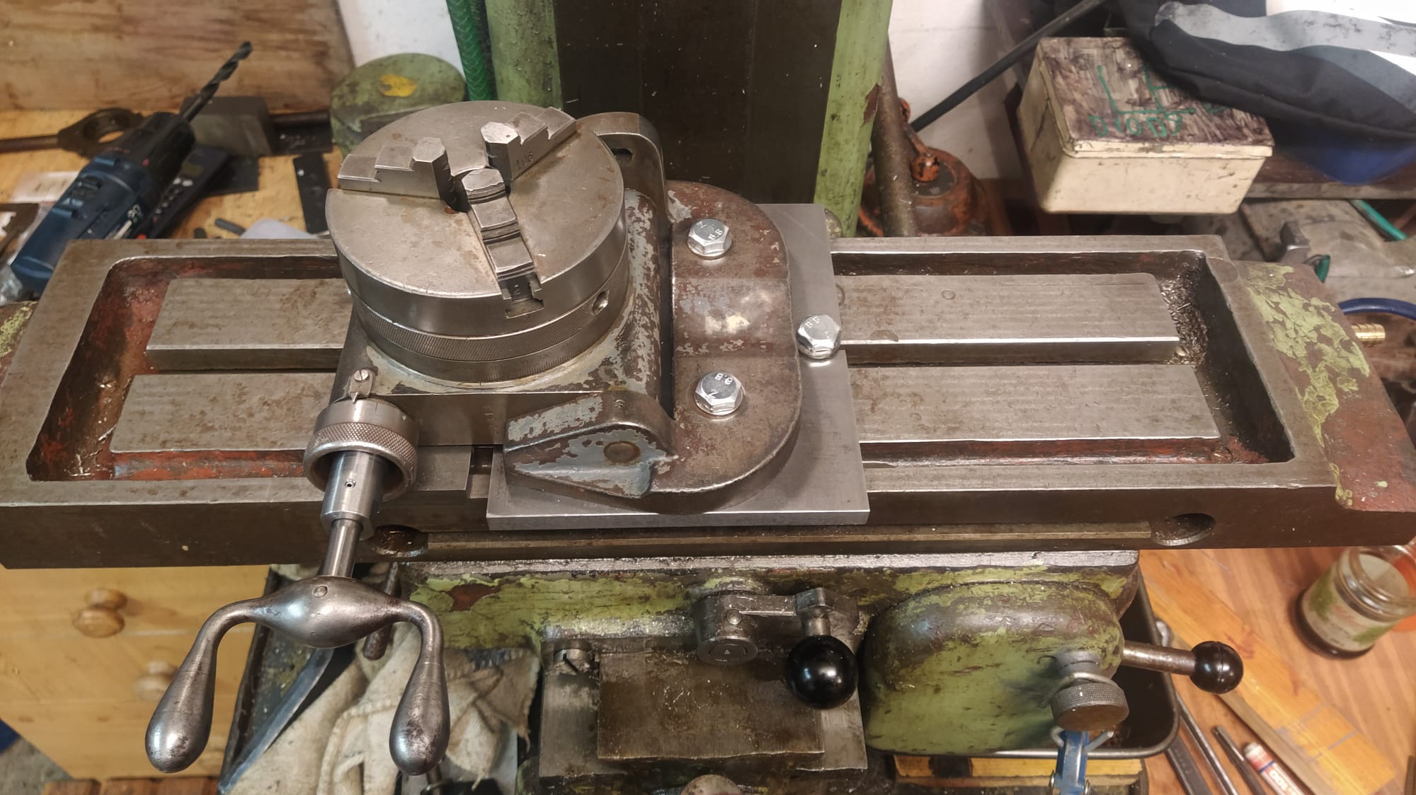 No, ale to je zas otočný stolek 150mm a dělal se buď pevný nebo takhle náklopný. A k tomu dělali ještě tu klasickou děličku s univerzálou alá Deckel.