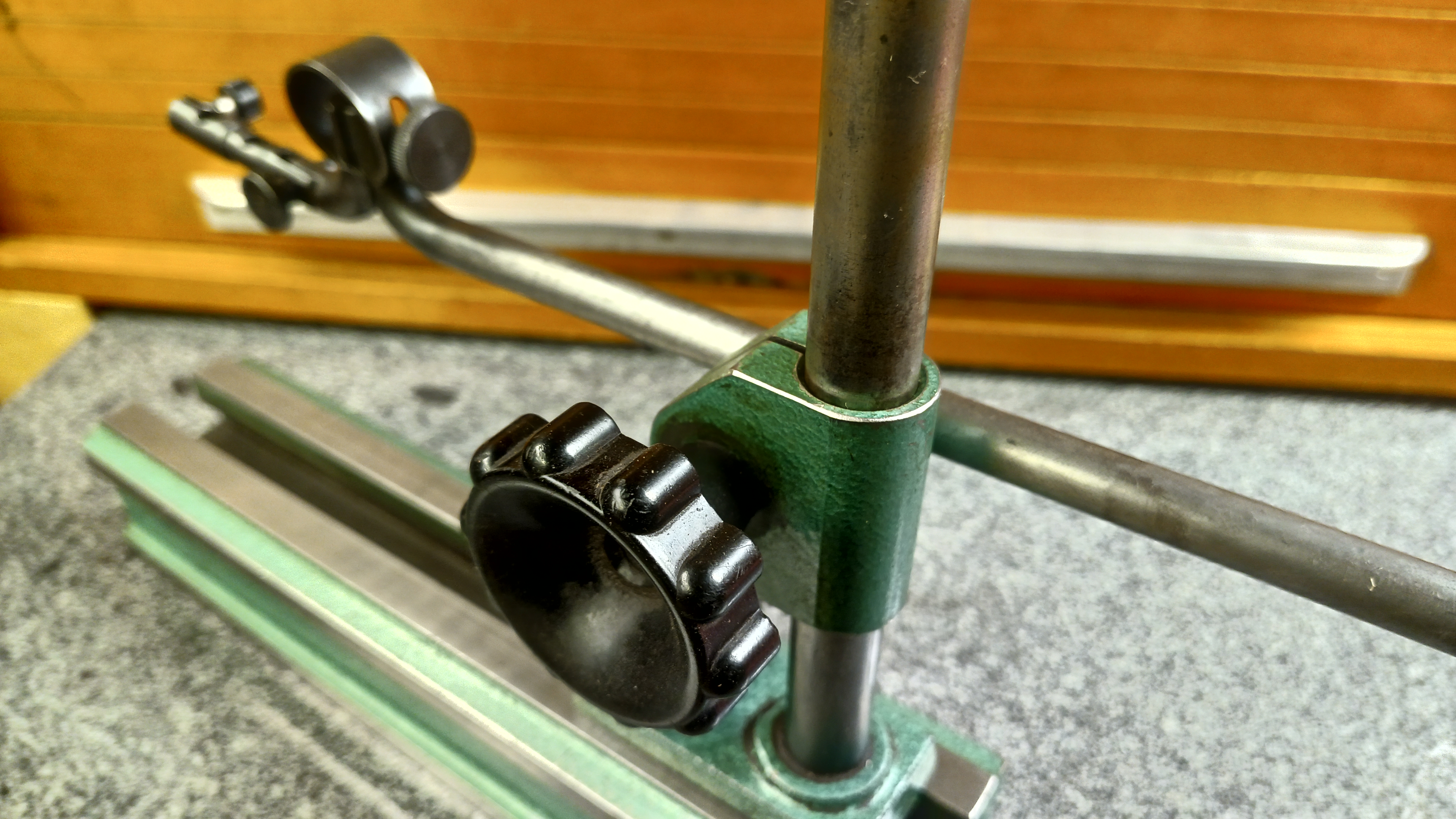 Ahoj, prodám stojánek, použitý ale pěkný. Perfektní na doměřování rovnou na stole třeba na frézce, šepingu.