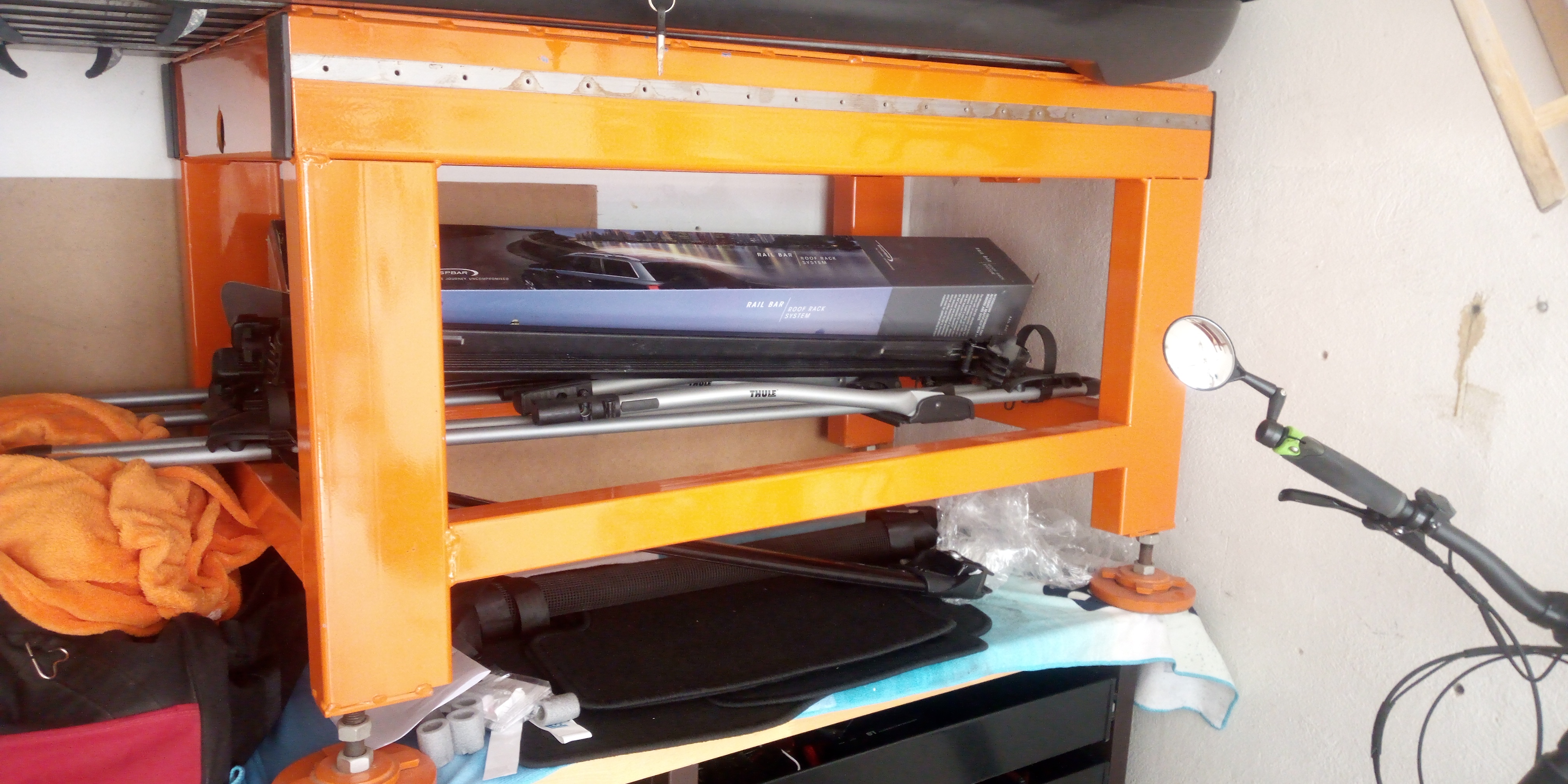 Ahojte, predám podstavec o rozmeroch 1200x700x700 výška sa dá nastavovať, zvarené z jokla 120x60 a 60x60. Na fotke je to zvarenec oranžovej farby :) . Cena 150€