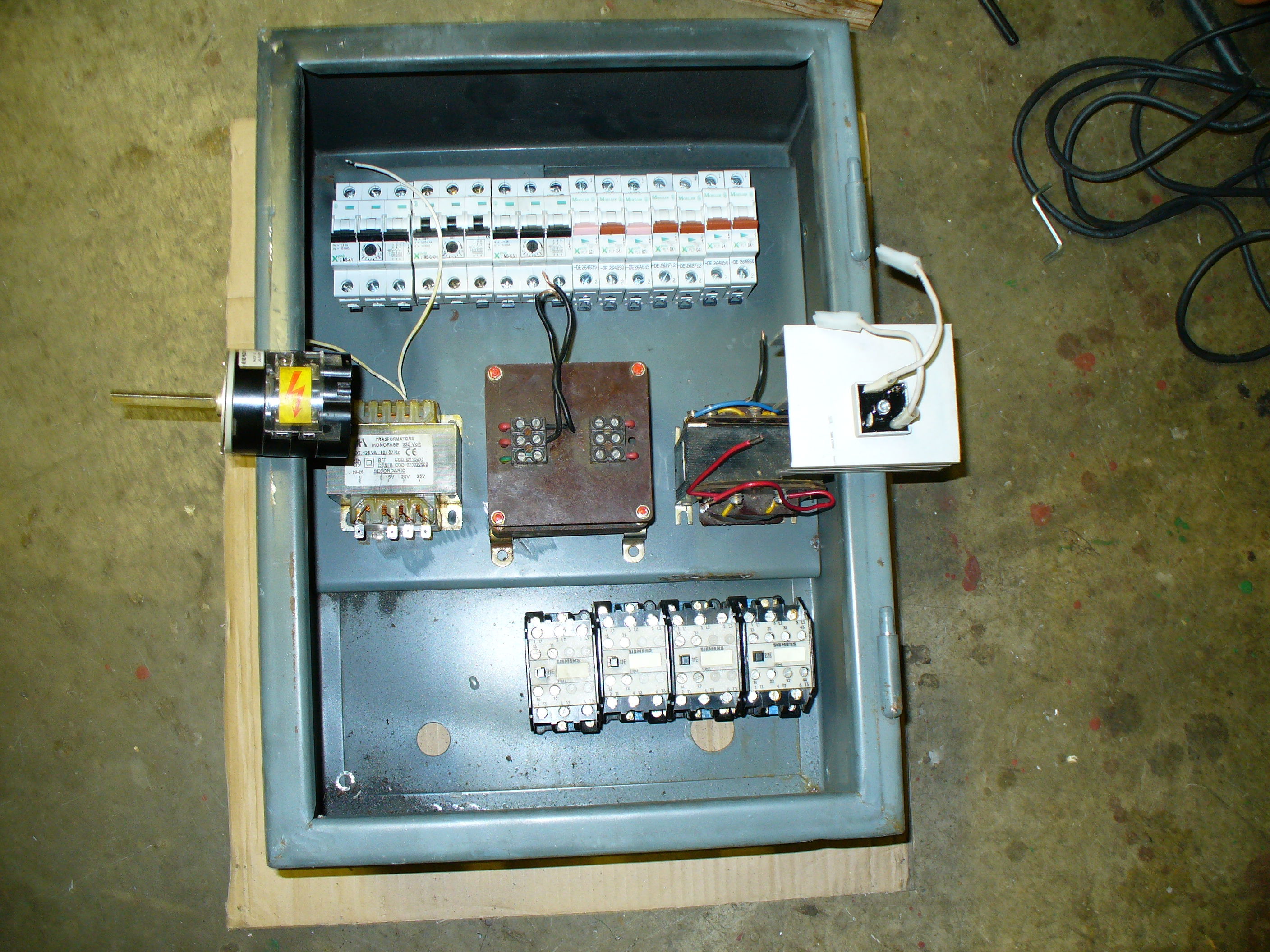 Už jenom přidělat a zapojit.Hlav. vyp. a stykače jsem měl ,bedna z aukra,jedno trafo ze šrotu(to nejnovější), dvě jsem vyměnil za něco jiného.Dokupoval jsem tři motorový spouštěče ,můstek a sedm jističů.Celkové výdaje asi 4500kč .
