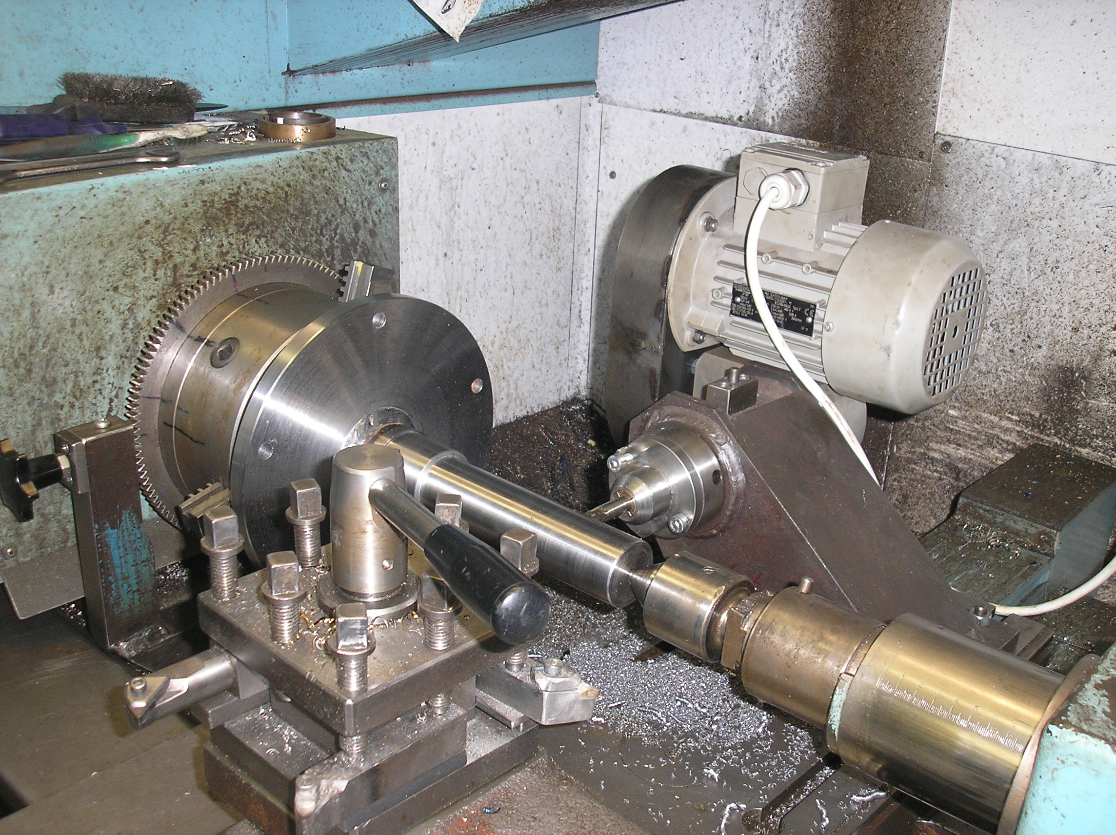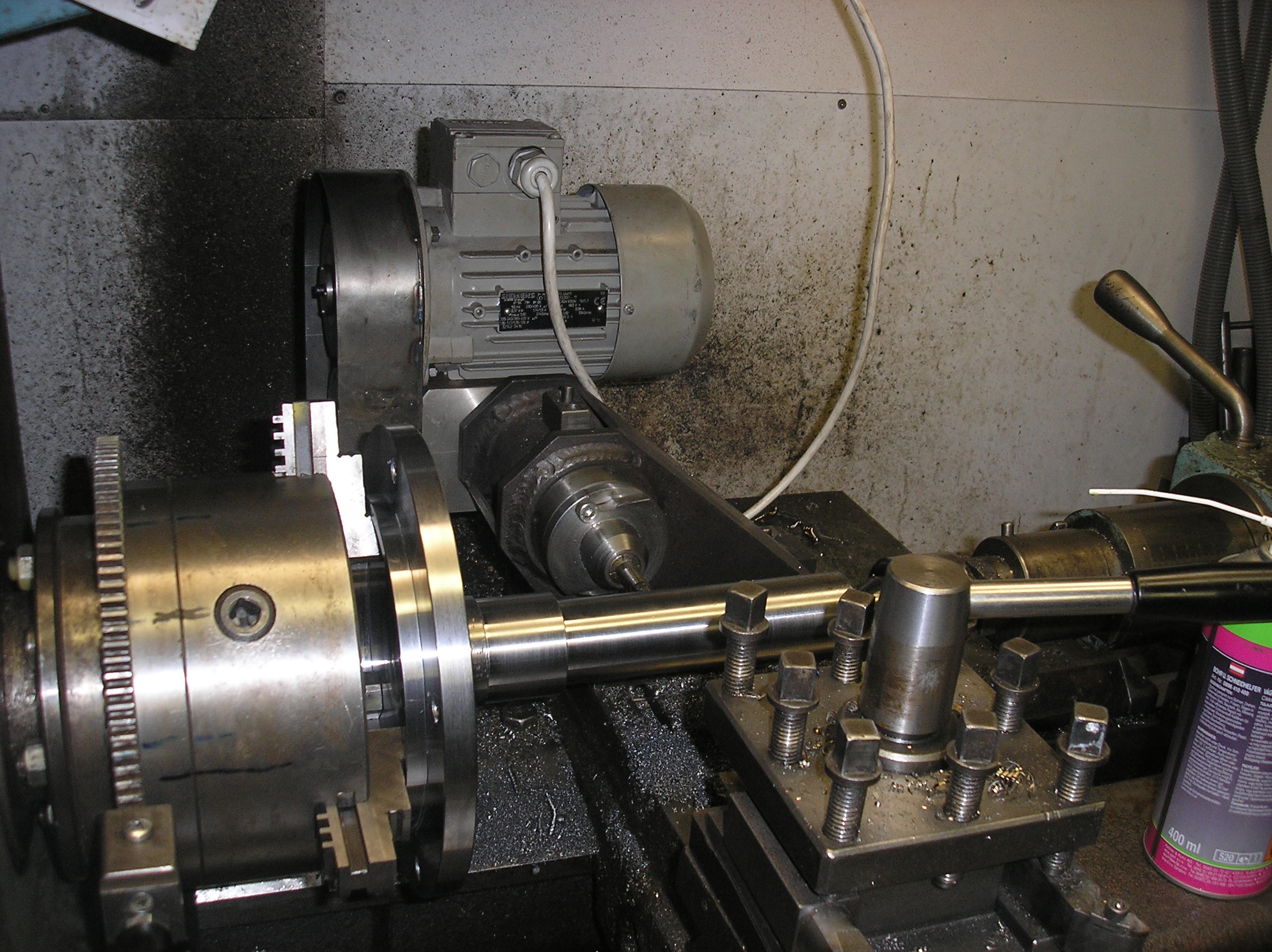 Věnec není ze setrvačníku těch 120 zubů sedí. Motor 2700 ot, 0,37 Kw ,je to málo chce to aspoň 0,5 Kw. Na motoru 4stupňová řemenice, dál kuželové ozubení 1:4. Otáčky vřetene 250-800 taky málo chce to aspoň 1200. Na loži mám dva dorazy, přísuv po 0,25mm, posuv frekvenčním měničem. Drážka 8*40 -2,5 min.