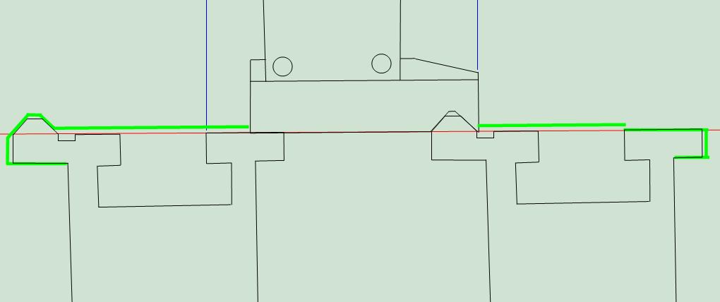 zelená čára: saně/suport - dosedal by jen v předu a vzadu (střed je jen pro koník - černá barva) a modře je obrys vřeteníku