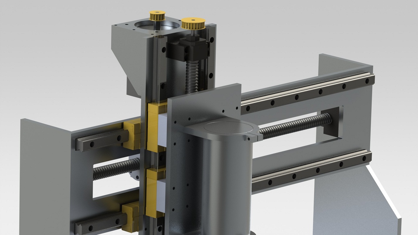 Teď mám hotovo viz obrázky, a řeším dilema. Chtěl bych motor Z navrhnout za "tower" s trčící hřídelkou vzhůru a použít ozubený řemen s převodem 1:2 nebo 1:3. Teoreticky by nemusel být tak silný motor. Ale otázka je, zda se do takové konstrukce hodí. Taky se mi tato konstrukce zamlouvá z důvodu lepší korekce těžiště portálu. Budu rád za jakýkoliv názor.