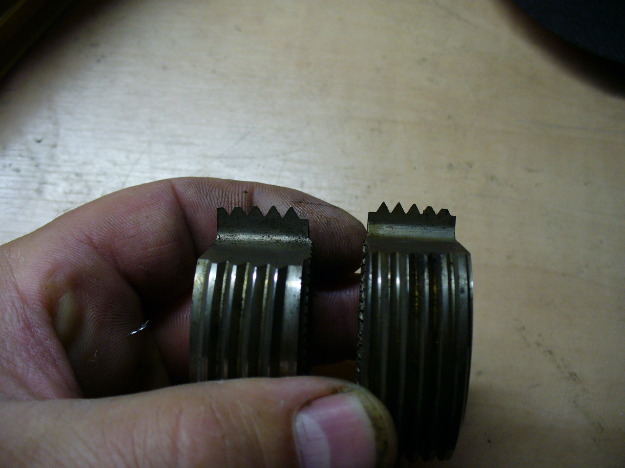 Jinak tyto násobné nože se dělaly i jako kotoučové, zvlášť broušené na levé a zvlášť na pravé průběžné závity(vlevo je nůž broušený na pravý a vpravo na levý závit, sedlo je vždycky proti tlaku), ty kotoučové mají taky sklon závitu a u whitwotrta musí být aspoň dva zuby aby se ten vrch závitu zaoblil