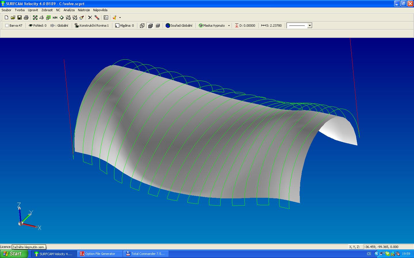 Honza - GRAVOS píše:ten "chod natvrdo" a drnčení je způsobeno tím, jak jsou data hrubá. Spočítal jsem počet úseček do konce na první části spirály, úseček je 101, a průměr 18.2. Vyšlo mi, že odchylka od ideálního tvaru je cca 0,005mm, což je pro tyto rychlosti obrábění docela moc, úhel mezi úsečkami je ještě pořád moc velký a projeví se právě tím tvrdým chodem. V brždění to není, akceleruje a brzdí se jenom na začátku dráhy a na jejím konci, v případě že rychlost neomezí nějaký dynamický parametr (START-STOP).