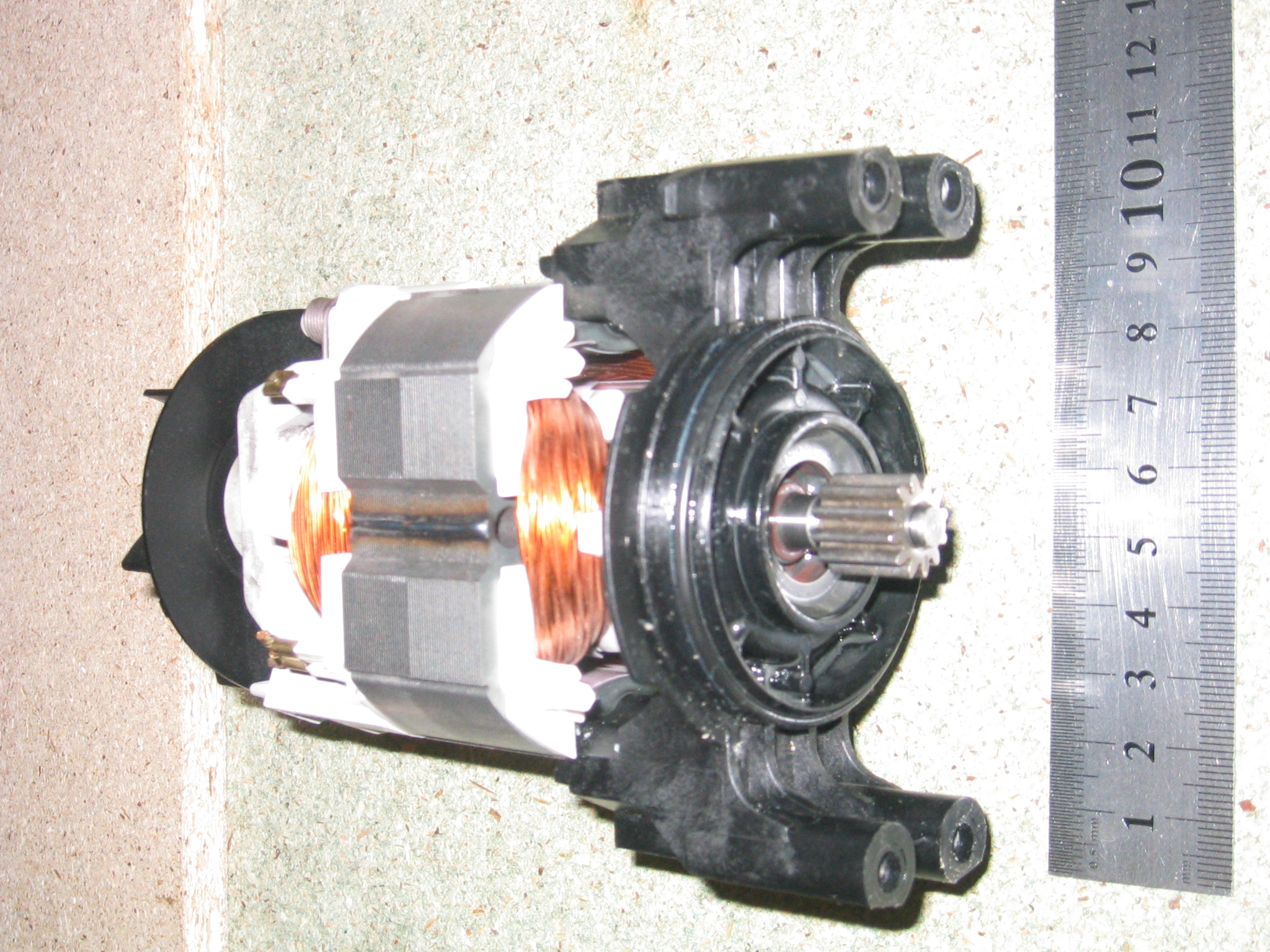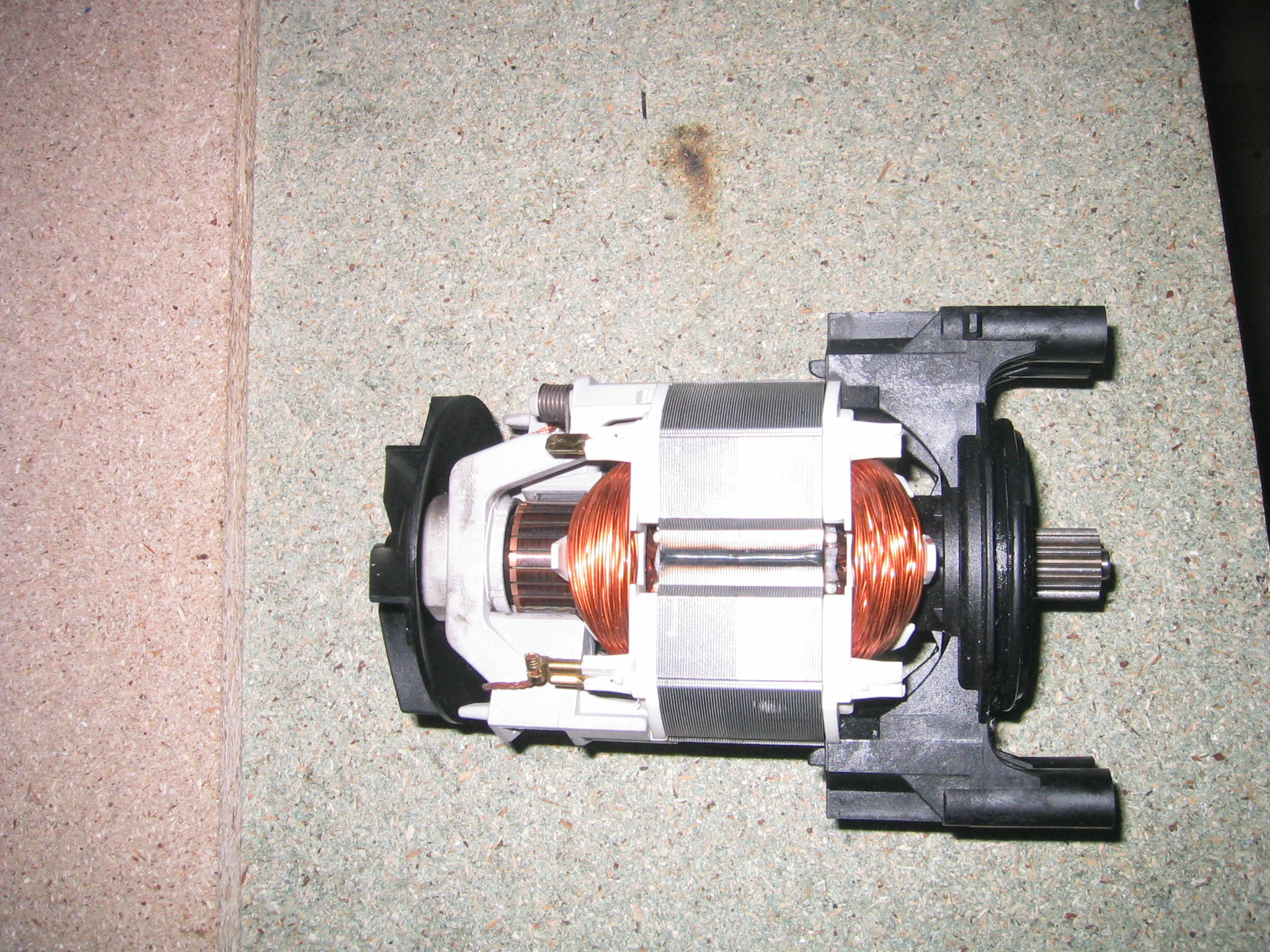 (zatim jsem si nepujcil otackomer abych to zmeril). Myslite ze by na tom sel nejak vyrobit zavit na upinaci matici pro klestinu? Vsechny frezy, co zatim mam, maji stopku 1/8". Prumer osky na motoru je 6mm. Snazil jsem se to nafotit.