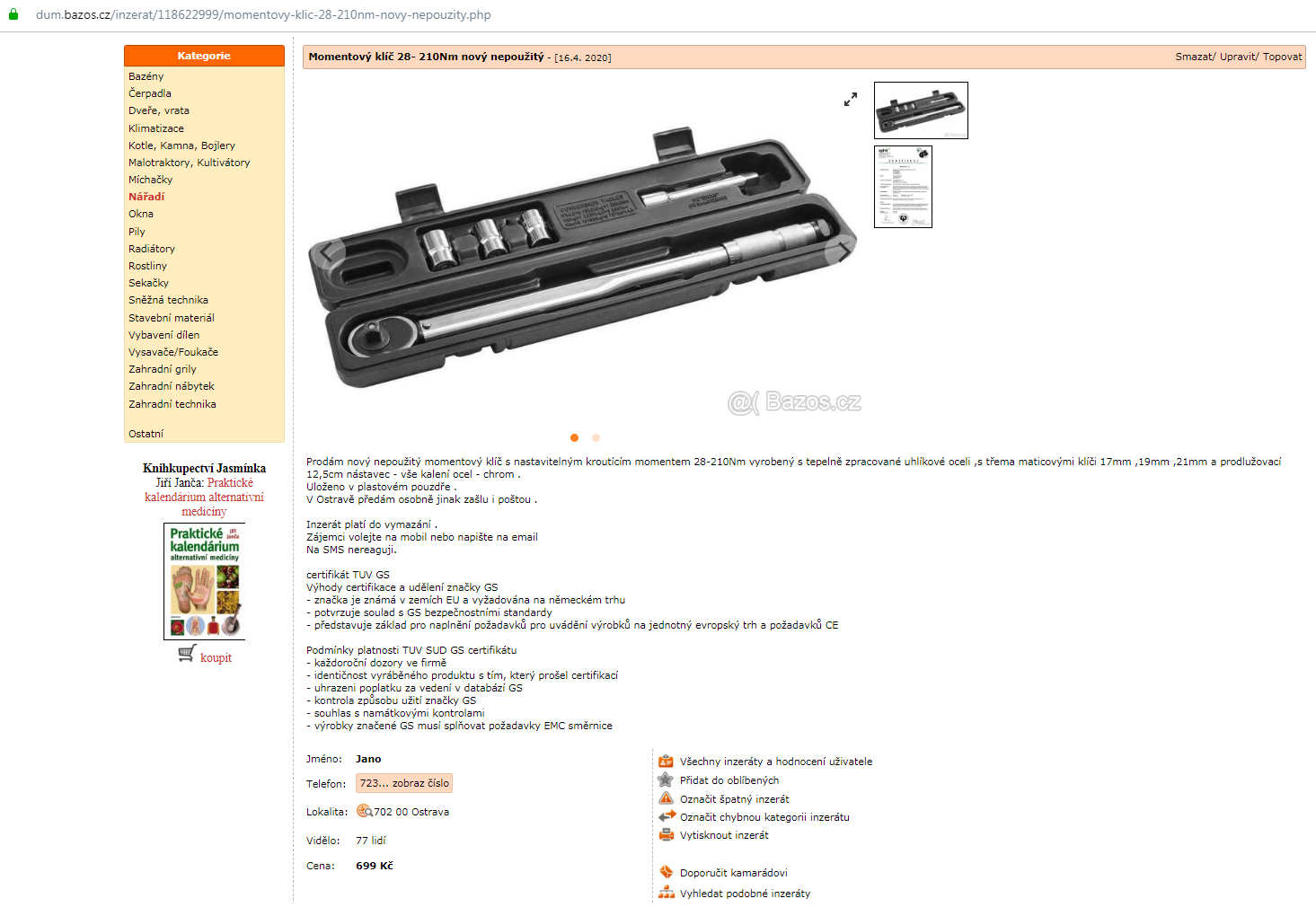 vcera jsem byl v kauflandu a videl jsem pana, ktery si kupoval 8 (vsechny co tam byly) slevnenych momentovych klicu (stejny jako lidl co mi prdnul, a stejny jako ta nejsprostsi cina), ale ve sleve z 500 na 250Kc! no nekupte to!