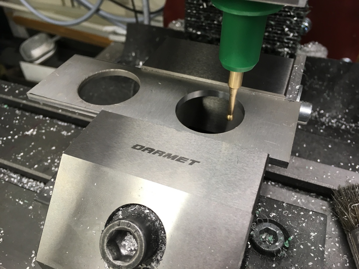 - Pokud je to upnutí sondy tak klíčové, tak proč neumístit na stroj někam do fixního definovaného místa třeba nějaký referenční hranol, na který by se sonda po zasunutí vždy zkalibrovala? Proti osazování sondy to přece už nabude moc velké časové zdržení, navíc by to byla automatická procedura, která proběhne v době, když uklízím nářadí po výměně nástroje za sondu.