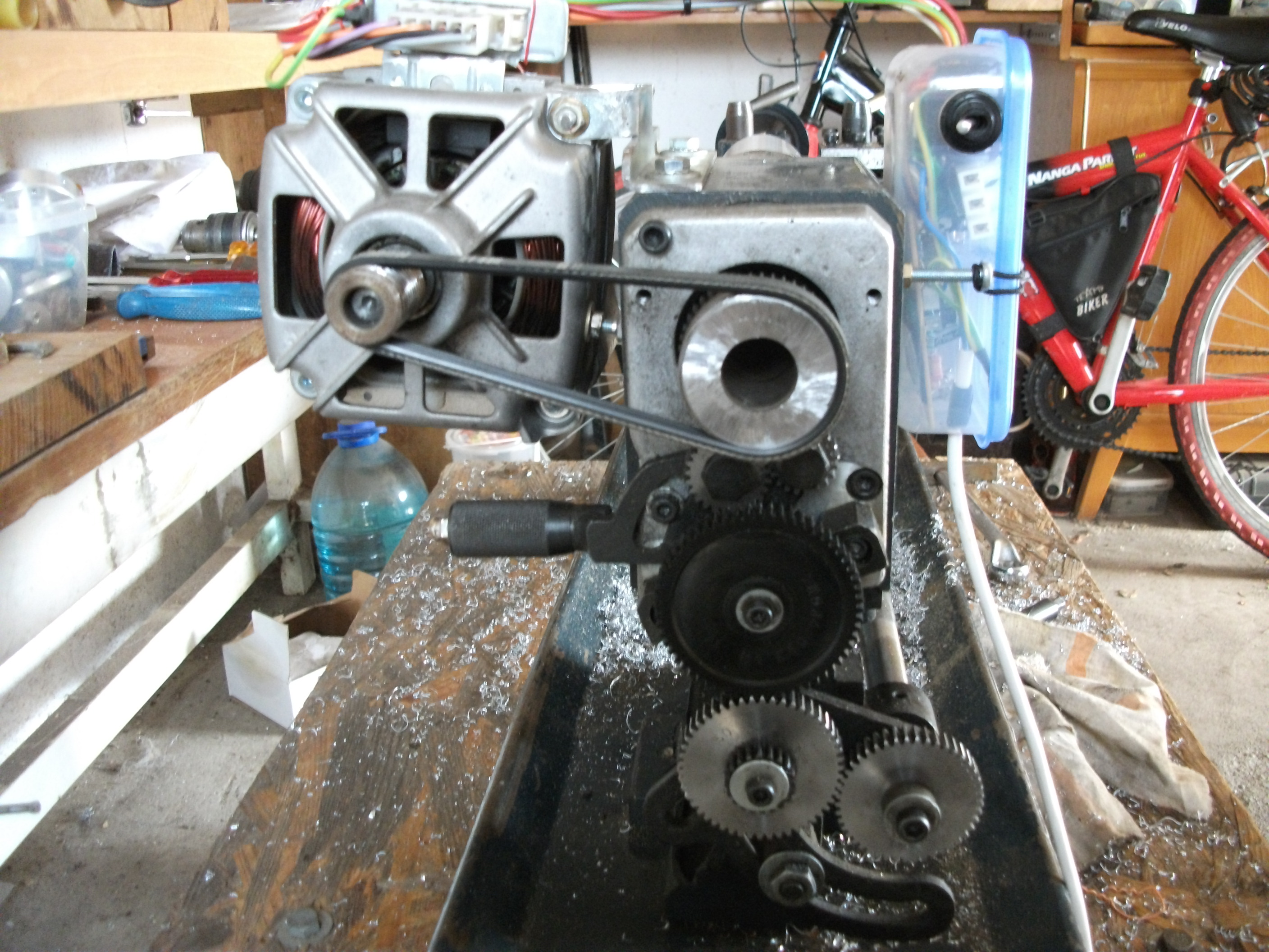 činnost-na tomto jsem odepsal,odpražil původní motor-vrtání díry do duralu-tento pračkový motor to zvládá v pohodě...
