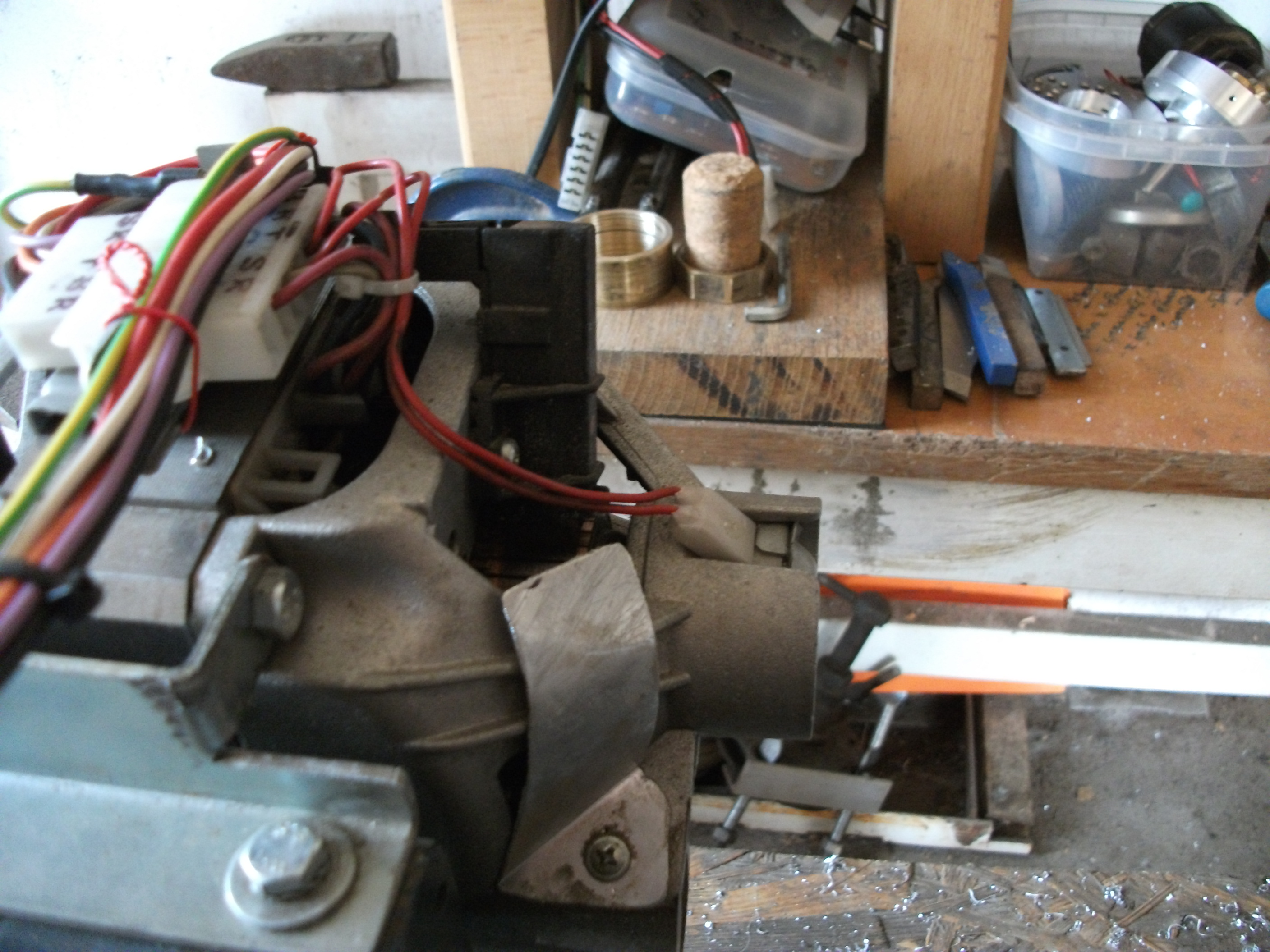 Tak jsem chtěl o víkendu natočit video jak soustruh(respektektive ukázat sílu pohonu motoru) při řezání závitů. Ale hle nastal poblém. Při otočení soustruhu (kvůli vymezené vůlí na loži) mi napadaly špony na komutátor. Takže si výsledek každý umí domyslet. Motor při min otáčkách začal cukat. Řikám si co je tak jsem si myslel že začalo zlobit tacho to jsem prošel a nic. Tak jsem se naštval a motor jsem zapojil na přímo do 230v (bez řemínku). A hle z motoru byla svářečka