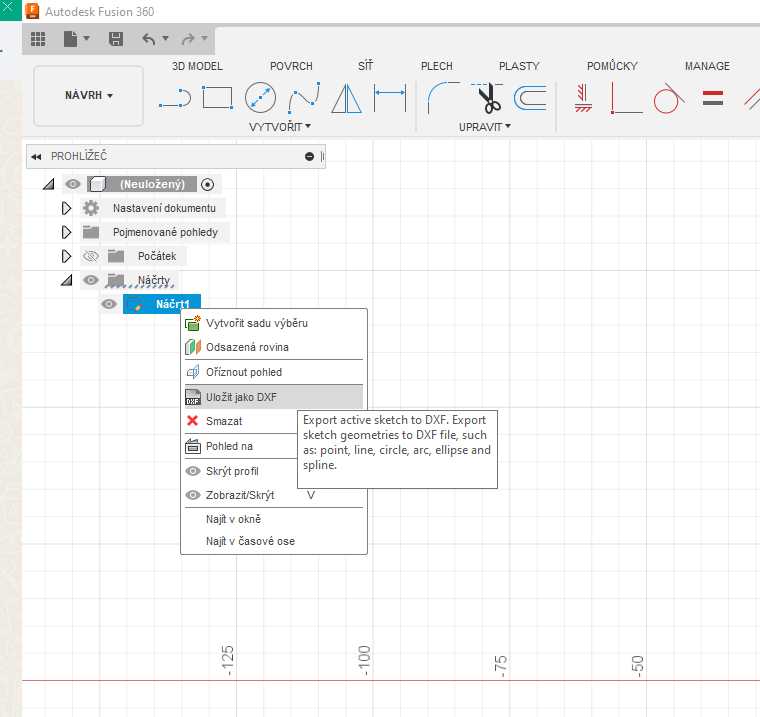 Ať klikám jak klikám je tam pouze "save copy as" což vede k nabídce na uložení do cloudu, bez možnosti volby formatu, nebo je tam volba "export" s možnosti uložení na disk, ale v nabídce formátů dxf není...