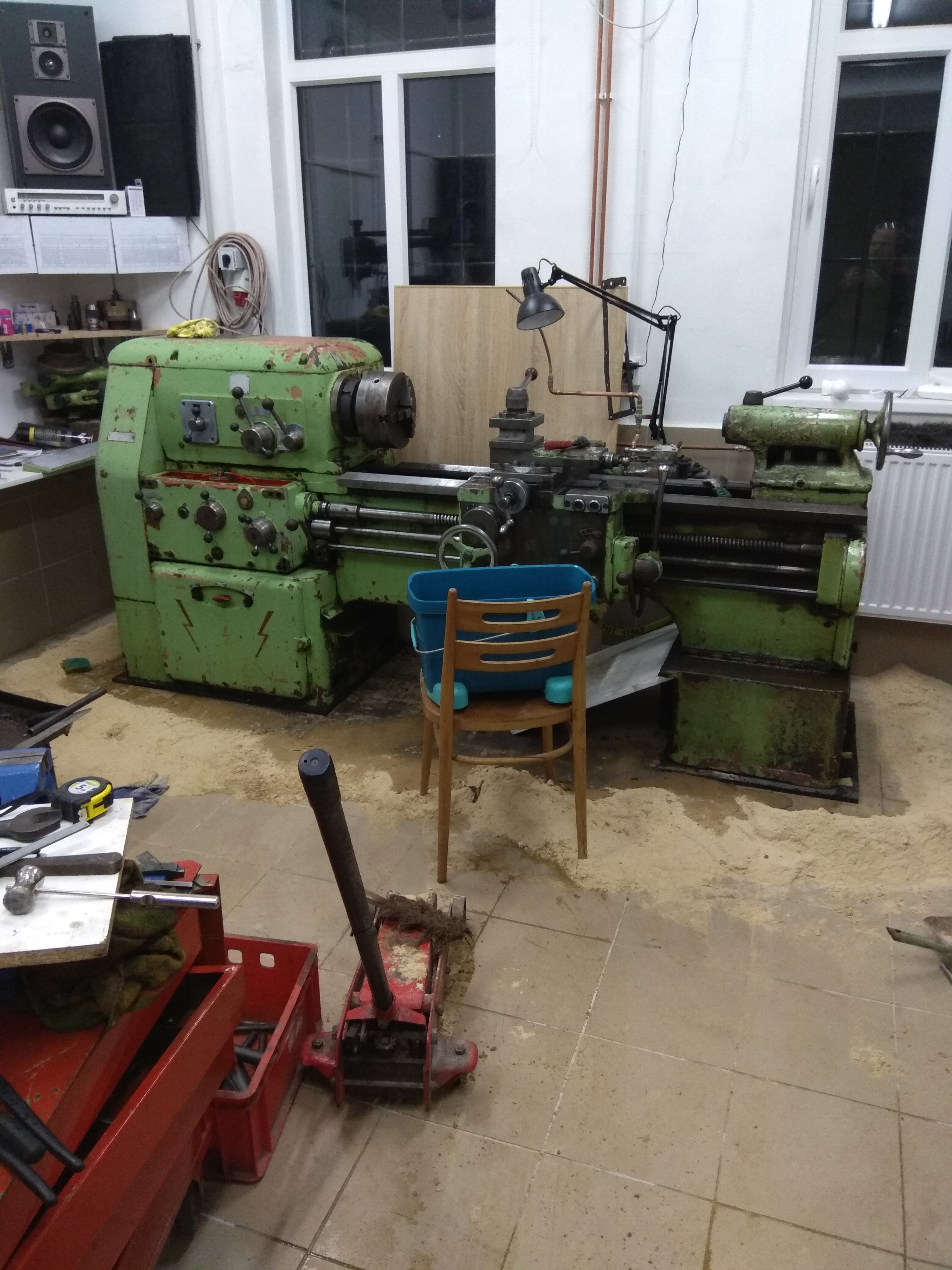 Stroj je docisteny, zároveň se vyměnili vůle na saních a dotáhnout jsem ložiska co jsou na konci příčného posuvu kde za ně tahá ten kámen z pravítka a myslím, že ta moje vůle v příčném suportu byla tady, uvidíme až to poskladam.