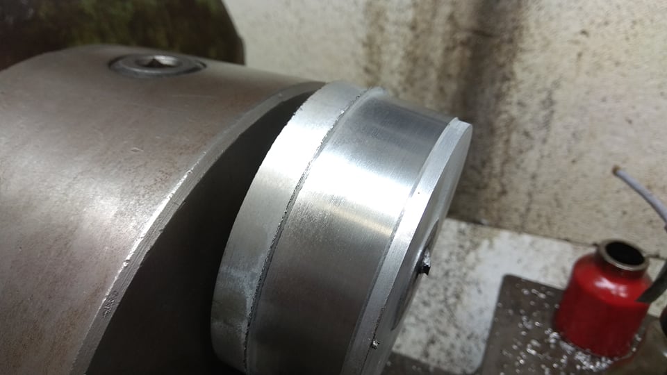 Z toho istého kelímku sme odliali kúsok bokom a po osústružení to vyzerá celkom dobre, žiadna viditeľná porozita, tak dúfam, že veľký odliatok bude taký istý.