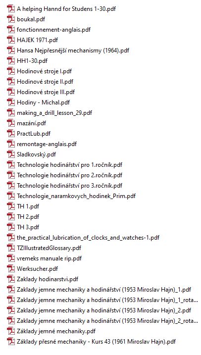 od Hajna je KTZ 43 základy přesné mechaniky, sto stran, cena 2,95 Kčs :D je to výcuc z mechaniky a hodinářství a z přehledu přesné mechaniky od téhož autora, jako není to ta kompletní, těch 18 kil je na.... :roll: