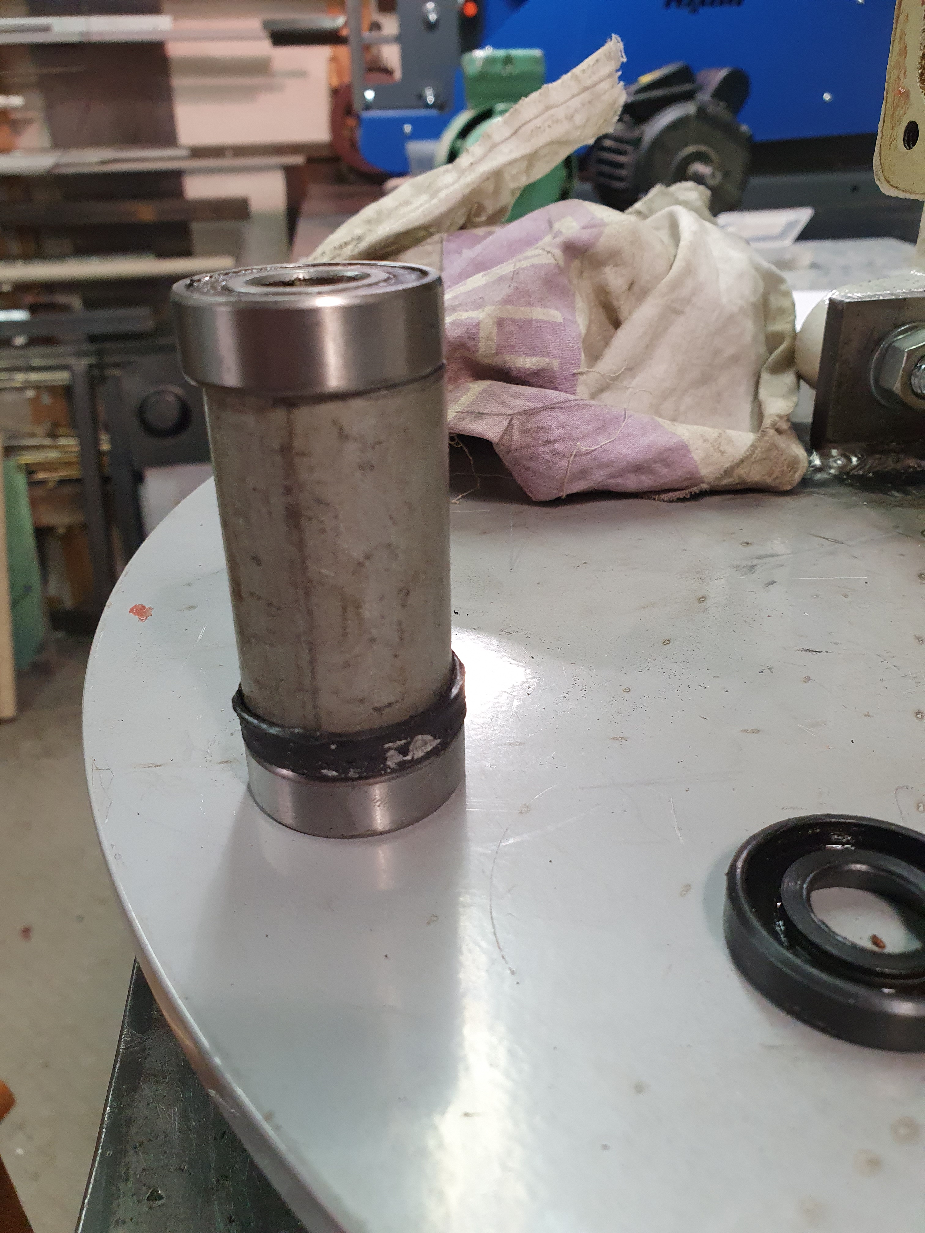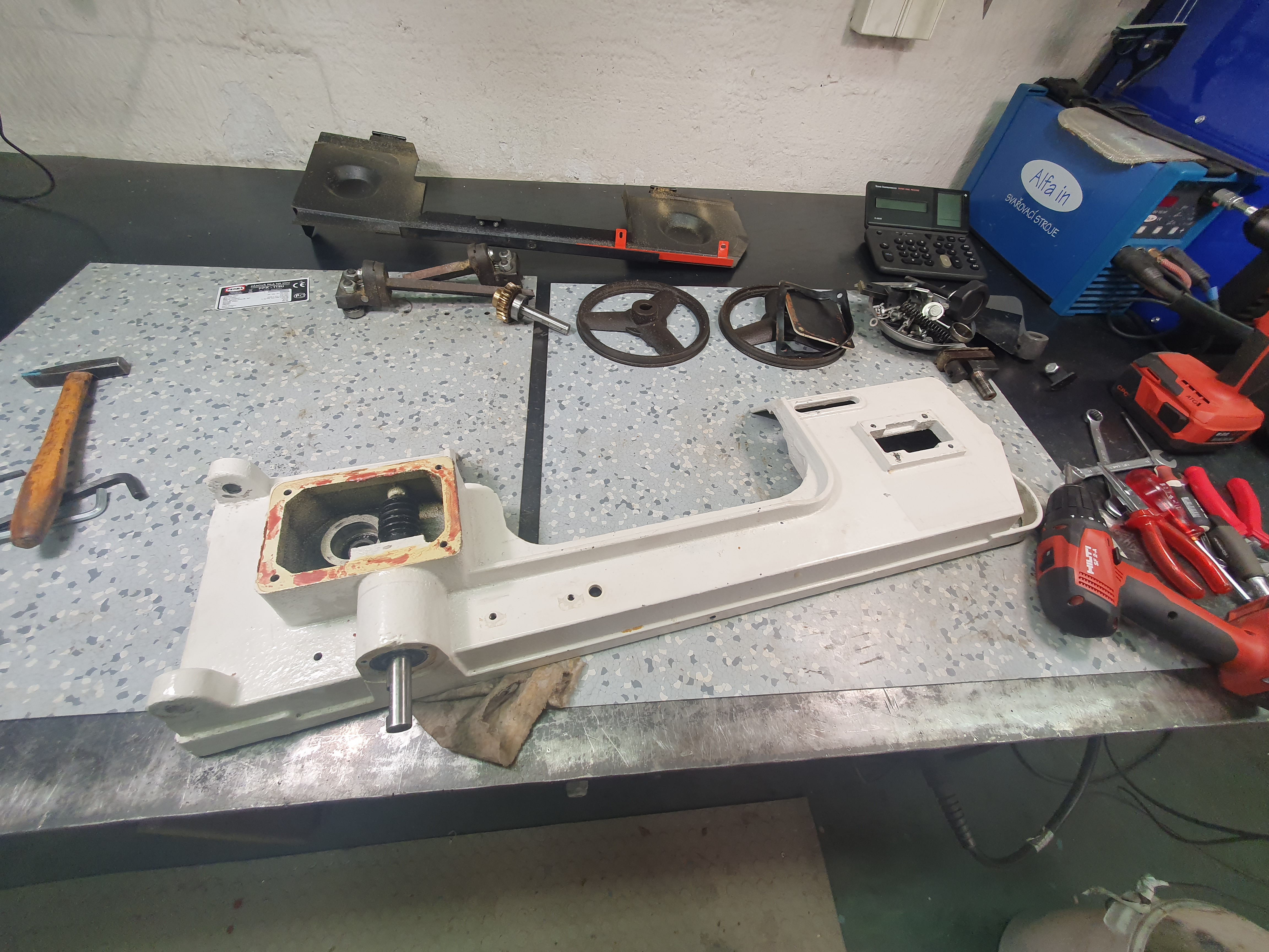 Ahoj díkyAxim píše: ↑30. 1. 2022, 1:53Ahoj MirkuCharon píše: ↑29. 1. 2022, 3:54 Tak já se dneska pustil do rozborky promy ppk115u, kterou jsem před asi půl rokem koupil od kolegy tady z fora. Plán byl udělat z ní vertikální pilu na vyřezávání, čili stůl, dolu nová vodítka, 3fáz motor, měnič na řízení a samo nový podstavec, těžký aby neplavala. Dneska jsem to rozhodil a první dojem byl, hoď to do koše a vyser se na toJeště nikdy jsem neviděl nezajištěná ložiska bez osazení, bez segerky, jen natlučená do díry. Vymezovací kroužek mezi dvěma čístý výsměch, křivě uřízlá trubka, která měla malý průměr, opírala se o ucpávky, ne o pouzdra ložisek...