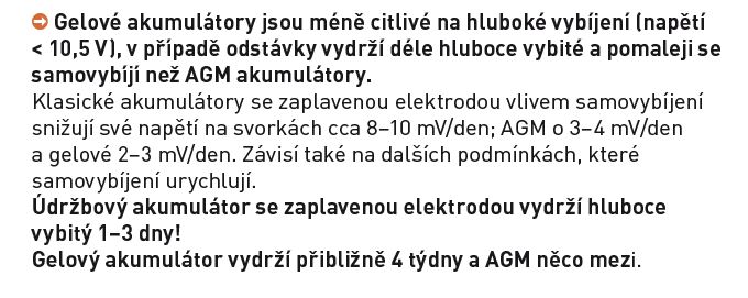 Jasně, právě proto jsem nastavil vypínací mez na 11 V (uvádí se, že vypínací hodnota má být 10,5 V, byla tak i přednastavena), aby se tak hluboko nevybíjela a protože se jedná o gelovou trakční baterii, tak by jí to dle výrobce nemělo vadit a vybitá na těch udávaných 10,5 V prý může zůstat až 4 týdny. Pochopitelně jí tím ale klesá životnost.