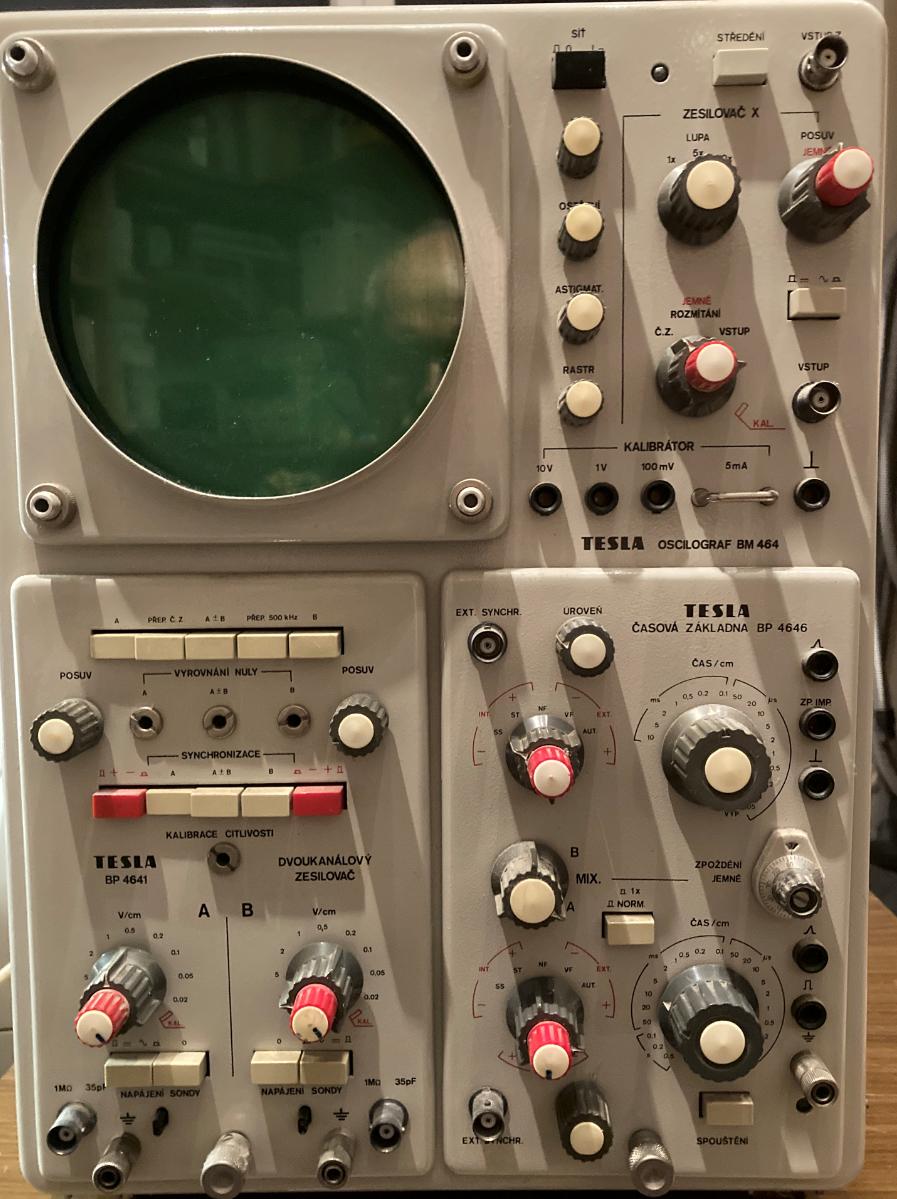 Na můj první osciloskop Tesla/Křižík D581, elektronkový dvoupaprskáč, ve tvaru krychle o hraně snad půl metru. Teď je to velké jak kniha, kolik to bylo v MHz je teď v GHz, inu pokrok