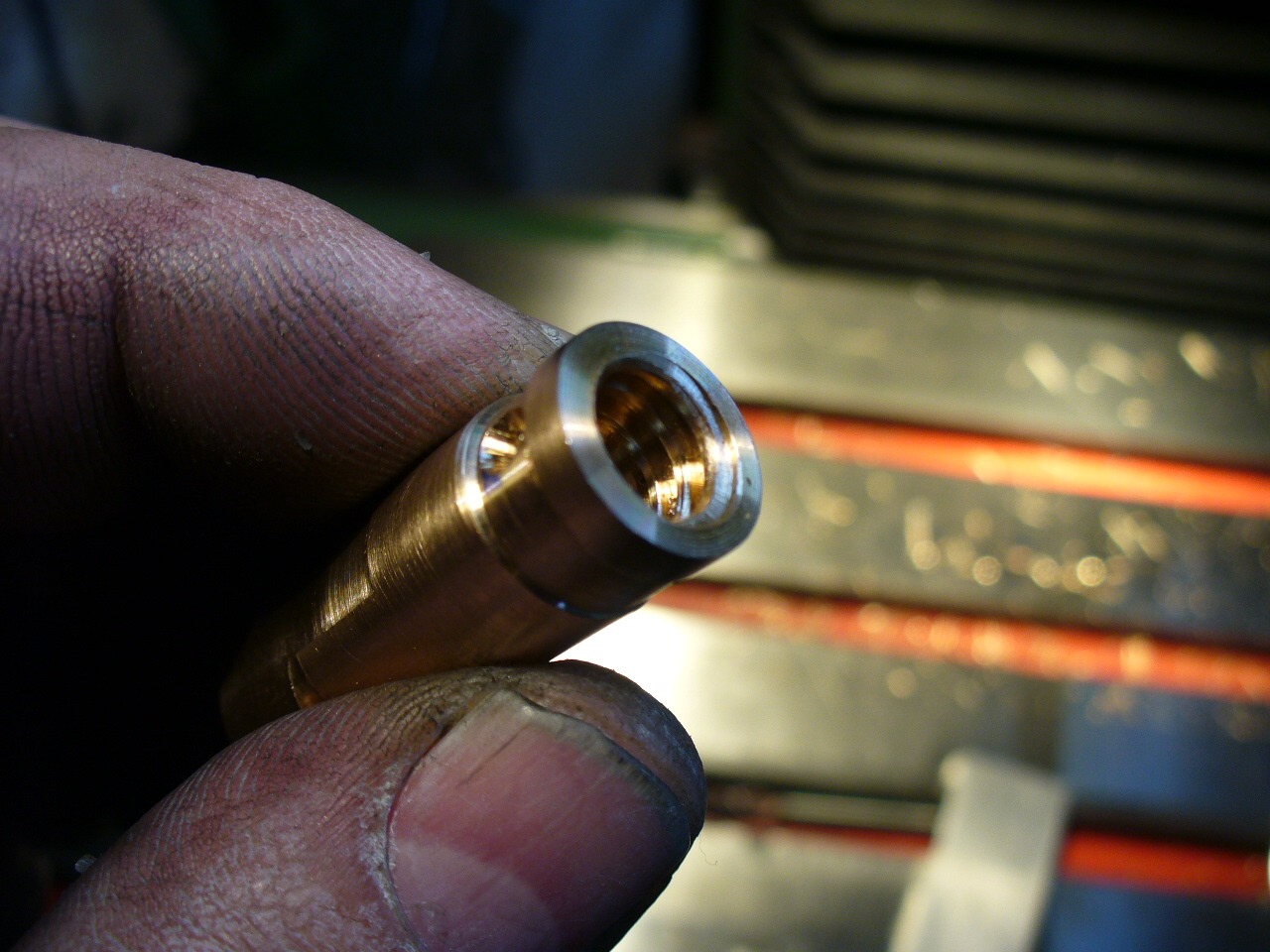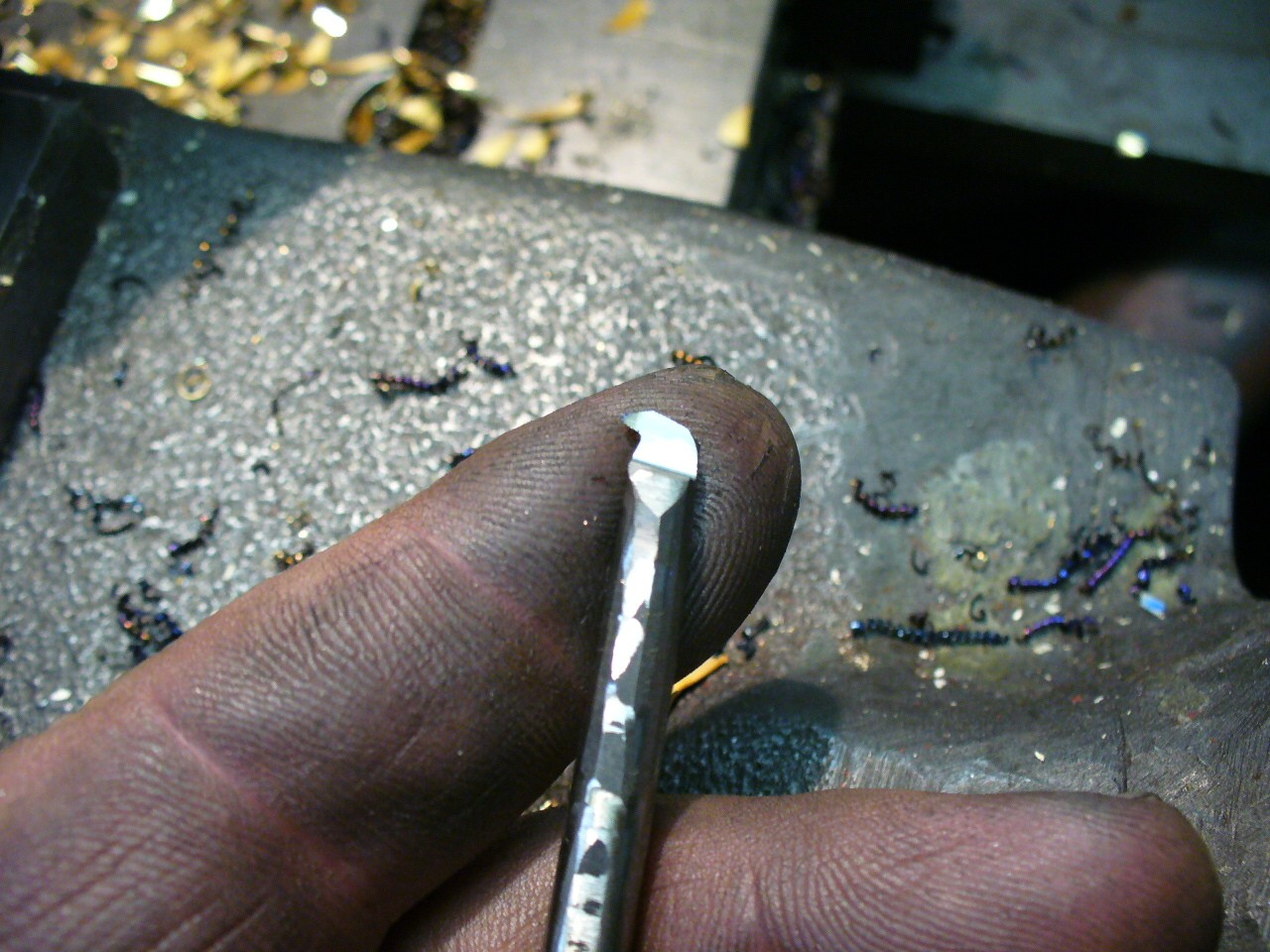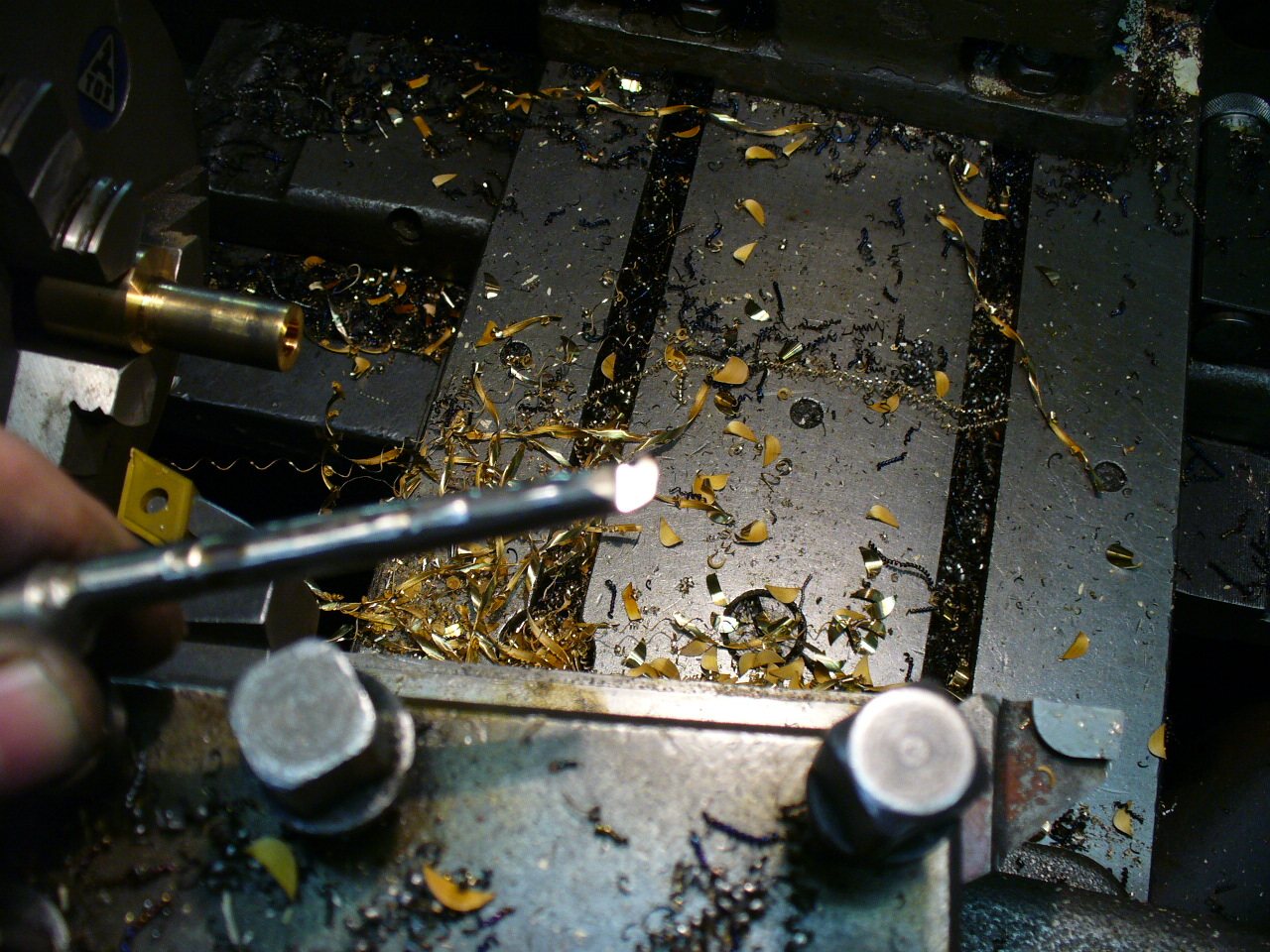 Nůž jsem si vybrousil, dřík má cca 5mm, kupodivu to šlo soustružit hezky, po desetinkách asi 2h na vosumnáctce :lol: