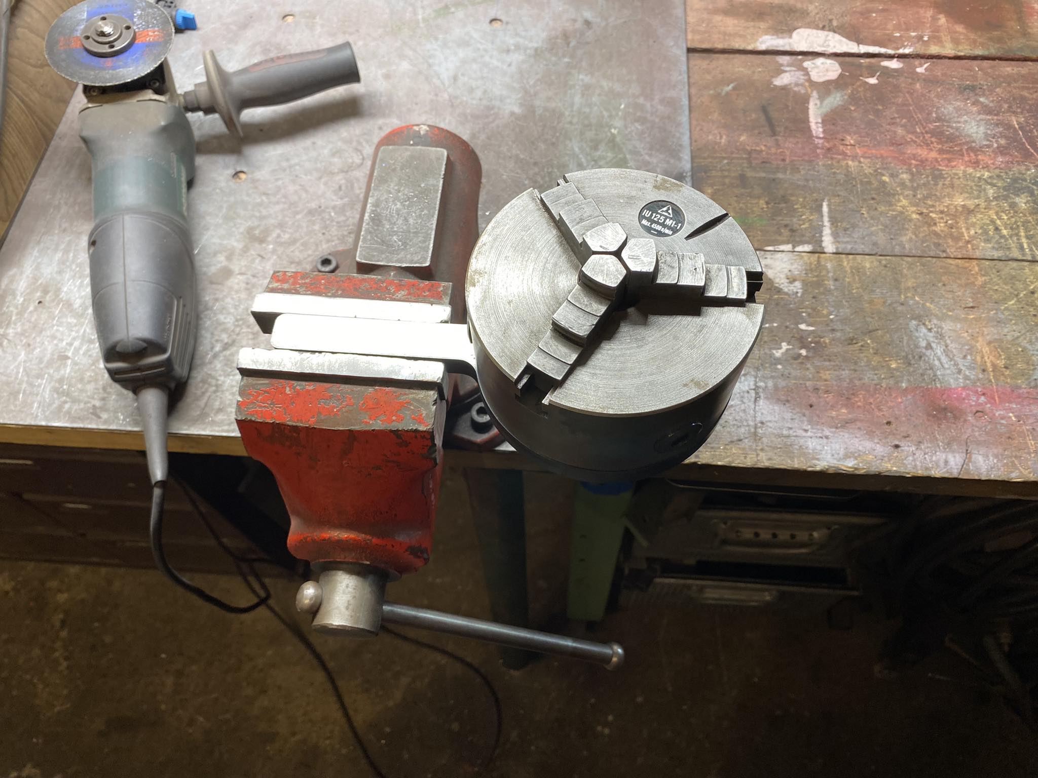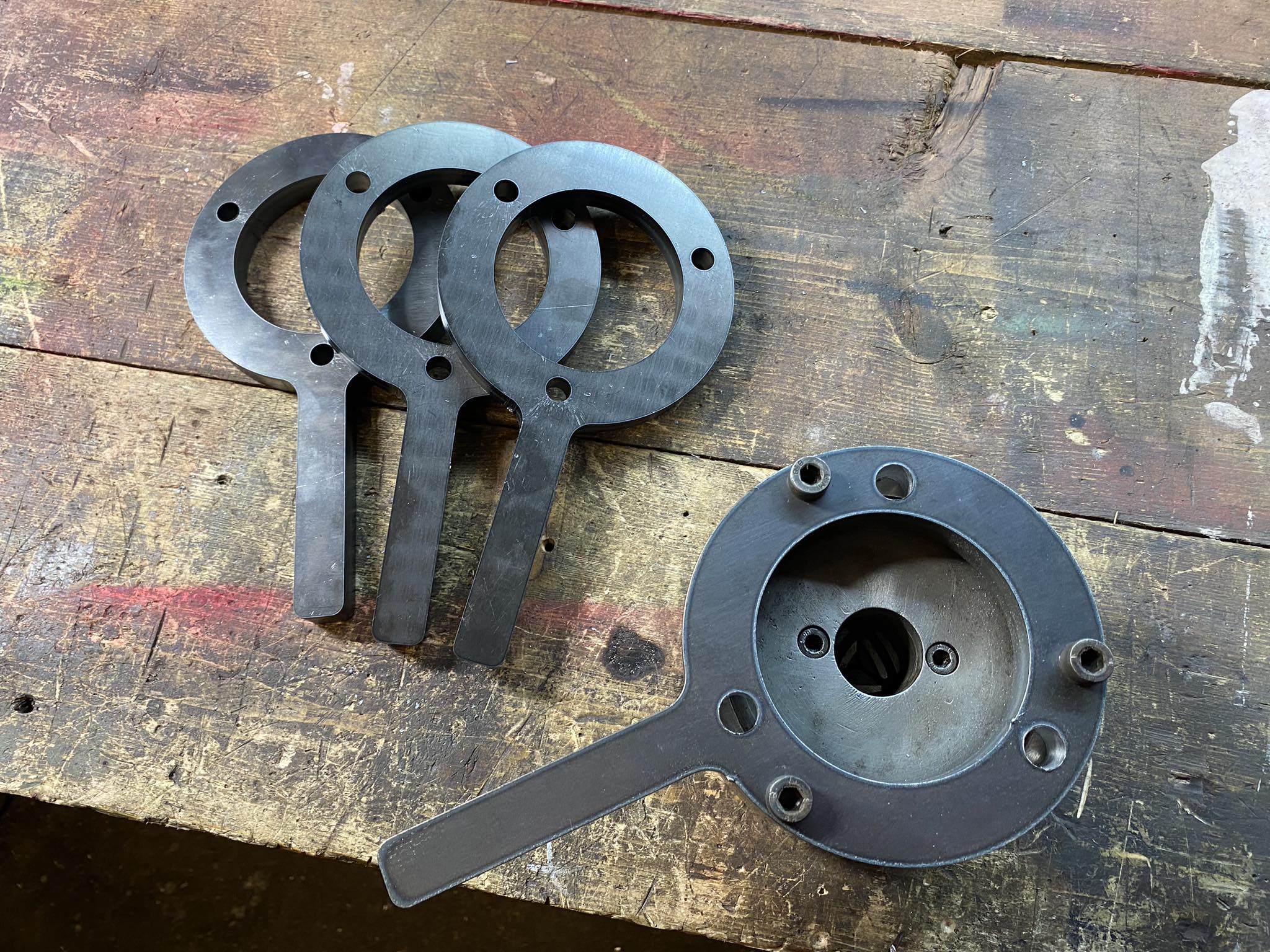Ahoj, mel jsem doma bezprizorni 125 sklicidlo a tak jsem si vypalil "drzak" do sveraku. Obcas se to hodi, kdyz je treba na necem rucne riznout zavit atd... Obcas si to upnu i do frezky jako drzak kulatiny, no asi je vam jasne na co to je. Bohuzel jsem blbec a udelal jsem spatne roztec sroubu. Takze jsem si do hlavy nasrouboval cerviky a lehkym poklepem jsem si oznacil spravne diry a vyvrtal. Diky tomu to davam zdarma, zbyvaji posledni 3ks. Jinak jsem na to mel byznys plan a chtel jsem to davat alespon za 500kc\ks. No mozna az dovedu spravne zmerit roztec sroubu... Tyto 3ks jsou tedy zdarma. Jo a je to kus poctive 15mm oceli. :D