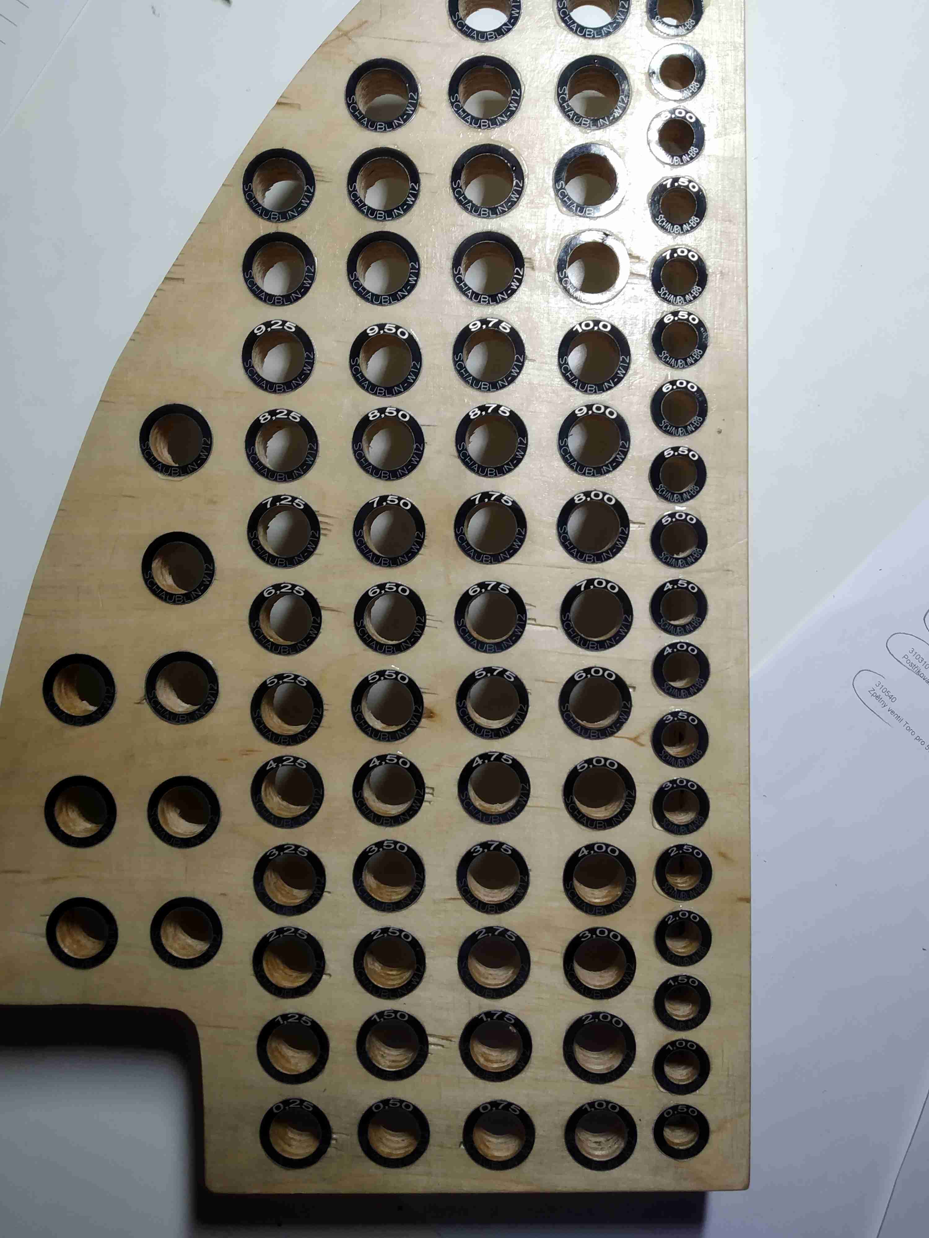 já si shodou okolností dělal taky tento týden držák, ale na W12 a B8, lakovaná překližka, ty popisy jsem teda trochu víc vyladil jak tomík páč ta březová překližka je svině a i s ostrým vrtákem jsem dumal jak zakrýt ty sem tam vyštípané boky :D