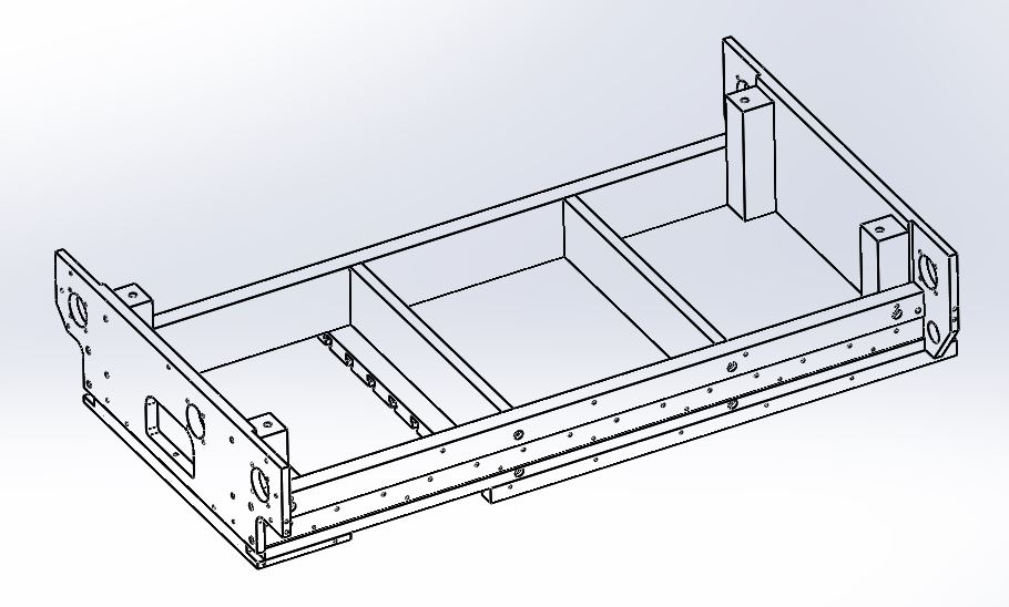 Nejsem si uplně jist co myslíš tím "šasi" ale předpokládám, že sestavu rámu + stůl" na fotce přikládám, jak to u mně vypadá bez desky stolu, jsou tam vlastně 2x těžký profil 80/40 a 2x 45/45 mm a to všechno je nakonec napevno sešroubováno s deskou stolu která ma tloušťku 30 mm. Jaký je ve finále průhyb nevím, ale myslím že nic dramatického to nebylo. Pamatuji, že jsem si dělal pevnostní studii a to pouze čela + hlavní profily 80/40 a kolejnice lineárů, nez stolu a pomocných profilů bylo prohnutí při zatížení 300N na každou kolejnici 0,023mm. Vzhledem k tomu, že se jedná o hobby stroj a ne produkční mašinu tak to považuji za celkem dostatečné.