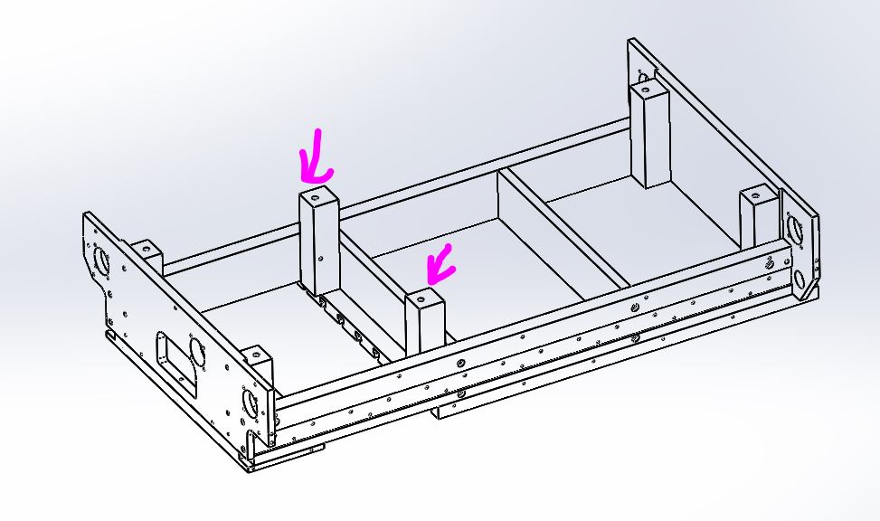 V tom podepření na koncích teď vidím možnou slabinu, takže řeším přesunutí/přidání noh doprostřed, protože zadní část s pohonem osy Y může klidně viset ve vzduchu. Ale je fakt otázka zda řešit průhyb 0,04 když portál z krajní polohy dojede nad prostředek. Nikdy nebude nic dokonalého, ale proč to neudělat ještě lepší.