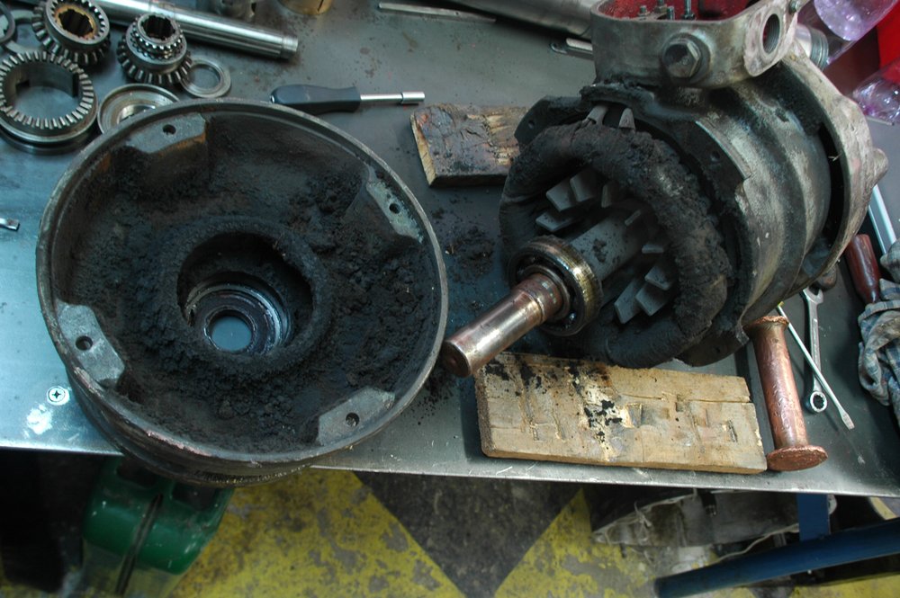 Vezmu toho rusa, to je pár korun. To větší je krásně hladký bez známek mechanickýho poškození, tam není co řešit, na té desce to nemá žádné otáčky a používalo se to málo. Oproti tomu vřeteno jelo pořád, už jsou vydrolené plochy, jak na obale tak na válečcích. Prvně na mě vypadly ty SKF, to byla darda, ale ty starý ruský vypadaj solidně, žádná čína.
